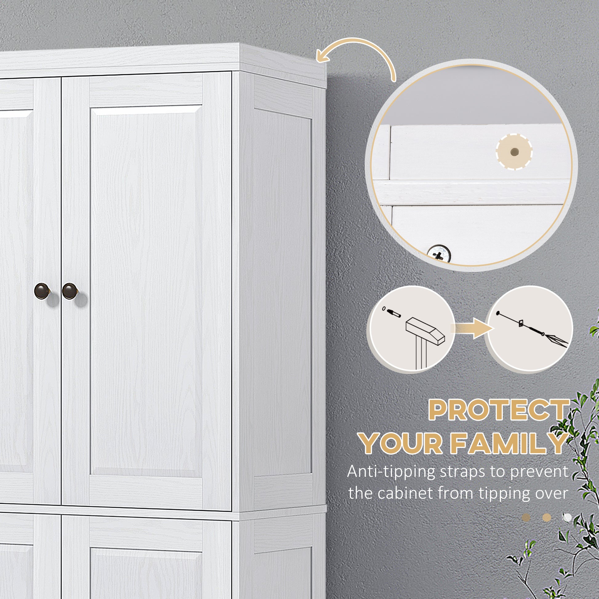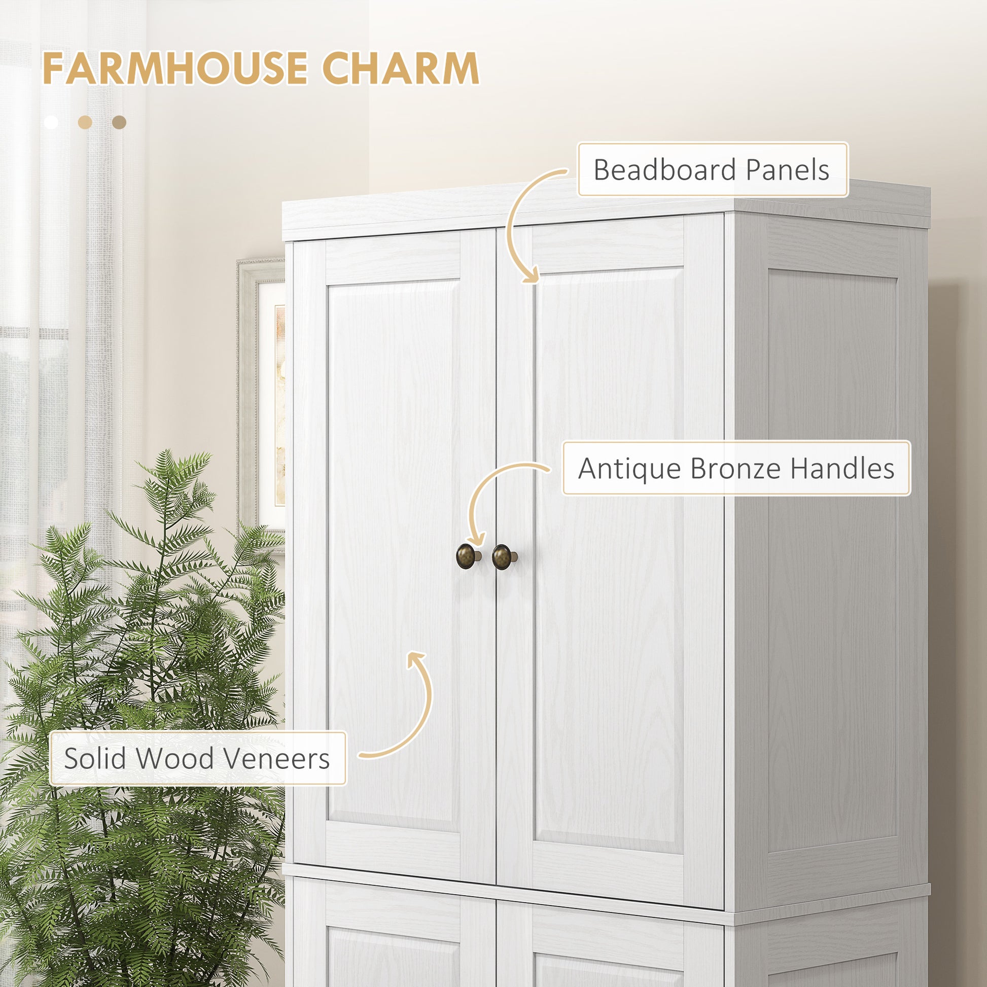 Homcom 72.5" Tall Kitchen Pantry Storage Cabinet, Freestanding Kitchen Cupboard With 4 Soft Close Doors And Adjustable Shelves For Dining Room, Distressed White White Mdf