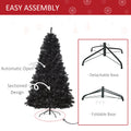 Homcom 7Ft Artificial Christmas Tree Unlit Douglas Fir With Realistic Branches And 1346 Tips, Black Halloween Style Black Plastic