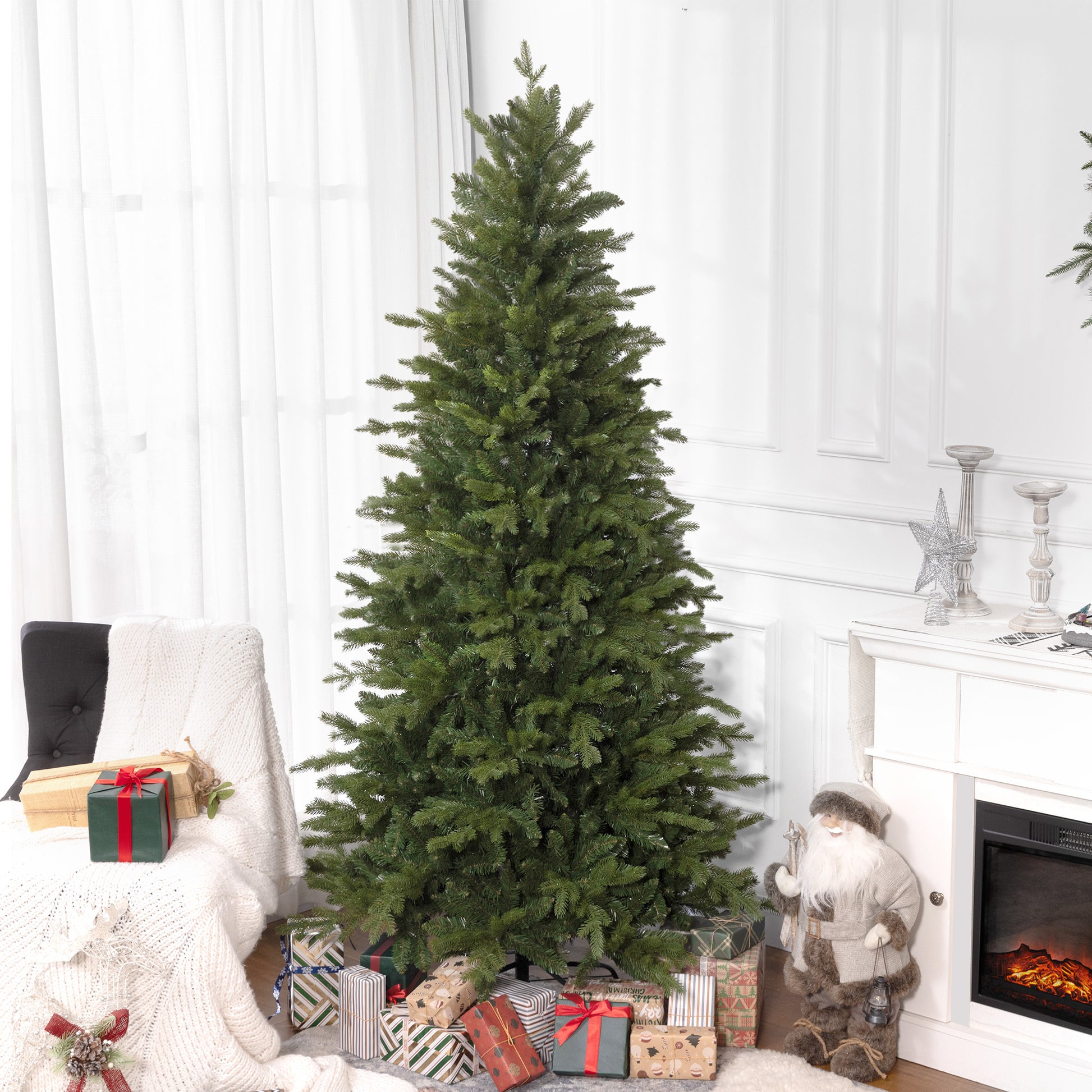 Homcom 7Ft Artificial Christmas Tree With 2445 Tips, Foldable Metal Stand, Easy Assembly, Hinged Xmas Tree For Home, Office, Holiday, Green Green Plastic