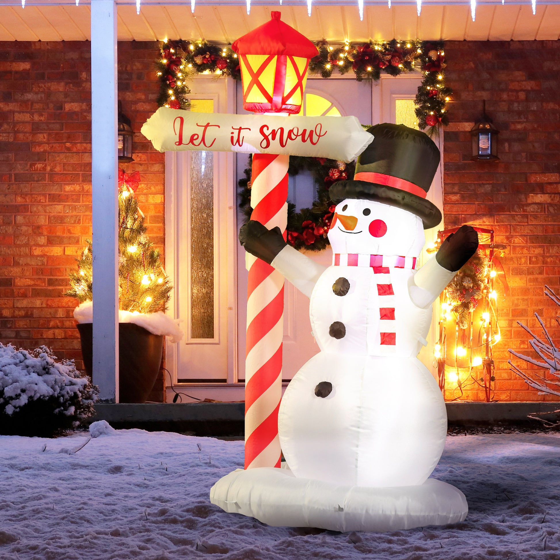Homcom 7Ft Christmas Inflatables Outdoor Decorationss Decorations Snowman With Street Light, Blow Up Led Christmas Decor Multicolor Polyester