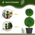 Homcom Artificial Plant For Home Decor Indoor & Outdoor Fake Plants Artificial Tree In Pot, 2 Ball Boxwood Topiary Tree For Home Office, Living Room Decor, Green Green Plastic