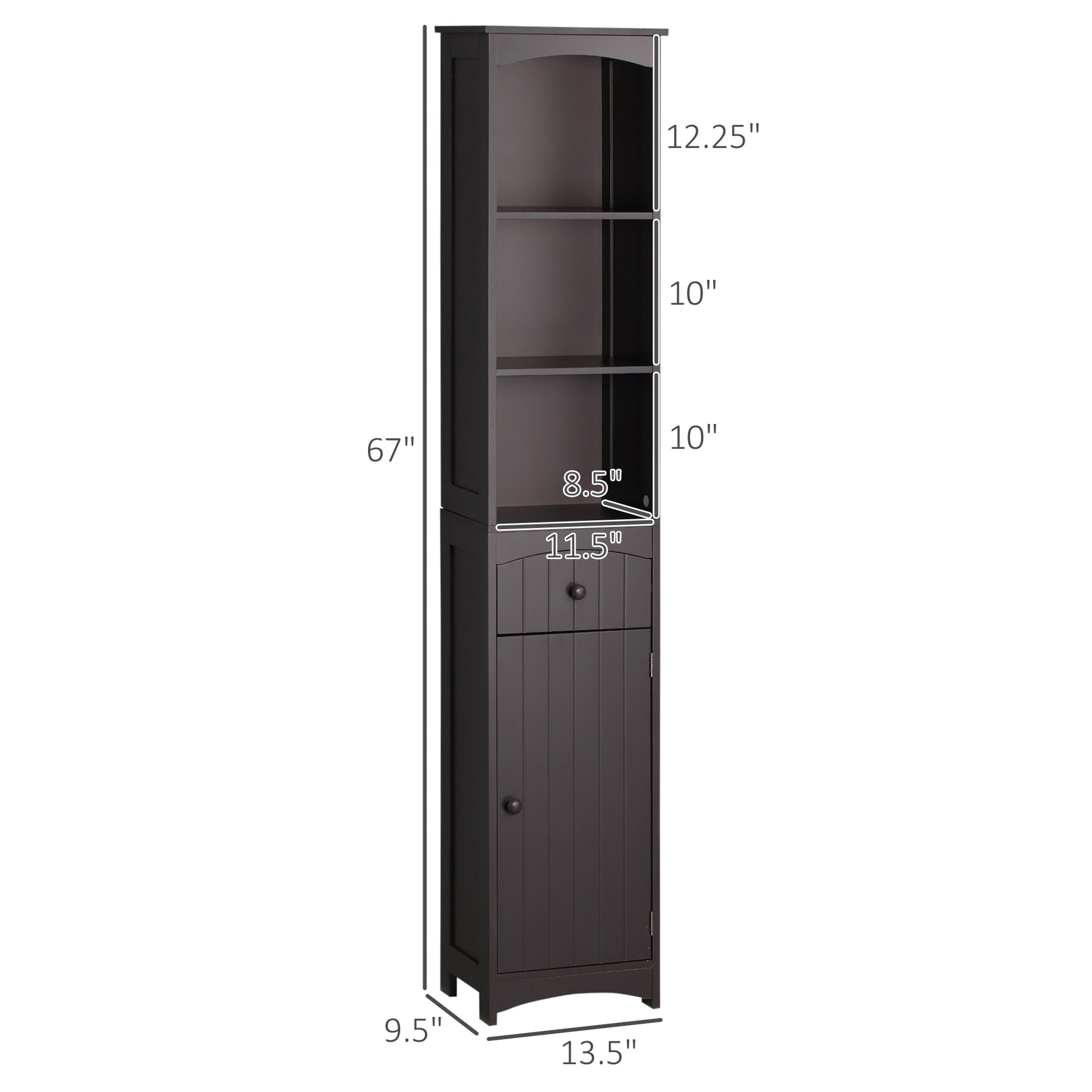 Homcom Bathroom Storage Cabinet, Free Standing Bathroom Storage Unit, Tall Linen Tower With 3 Tier Shelves And Drawer, Brown Brown Mdf