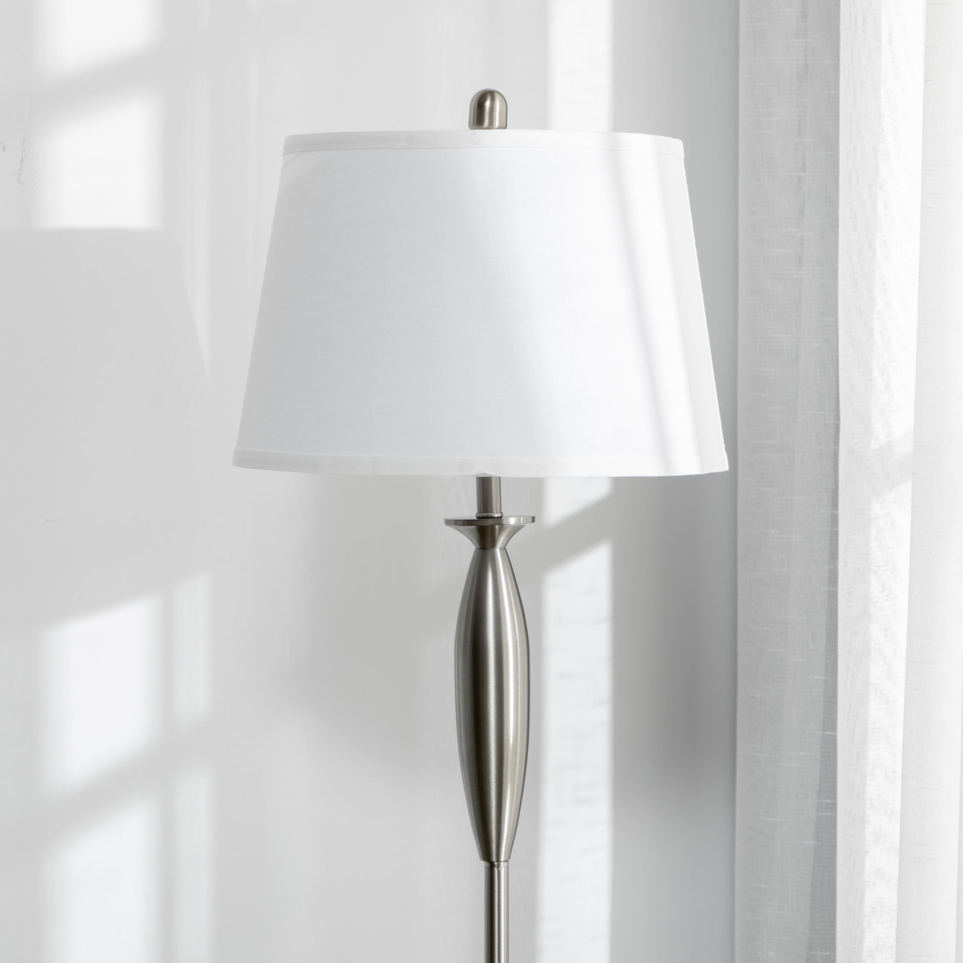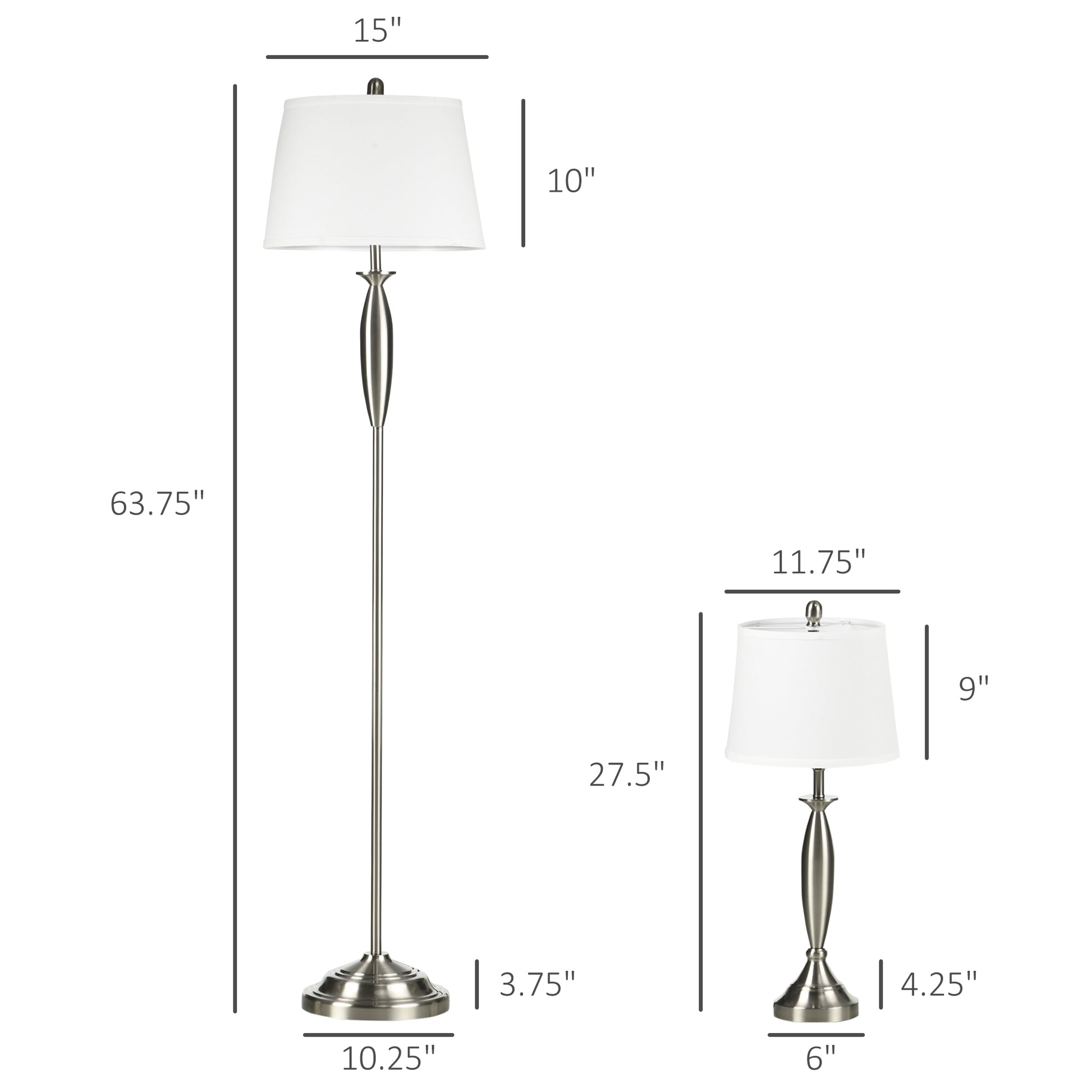 Homcom Boho Desk Lamp & Floor Lamps Set Of 3, 3 Piece Lamp Set For Living Room, Bedroom, & More, Linen Lampshade, Steel Base, Silver Silver Polyester