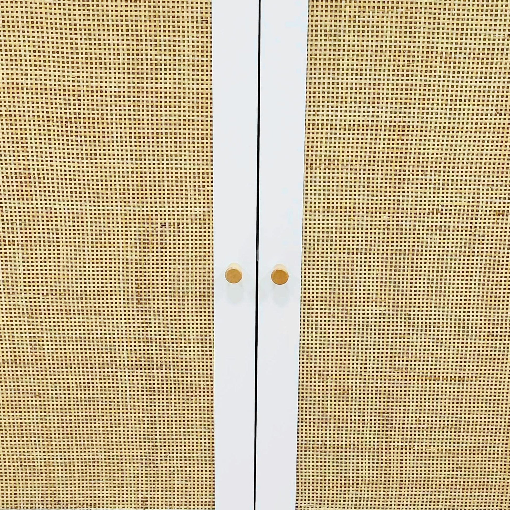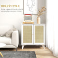 Homcom Boho Storage Cabinet, Kitchen Cabinet With 2 Rattan Doors, White White Particle Board