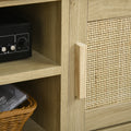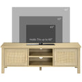Homcom Boho Tv Stand For 60 Inch Television, Entertainment Center With Rattan Door, Adjustable Shelf, And Storage Cabinets, Wood Tv Console Cabinet For Living Room, Bedroom, Natural Wood Natural Wood 60 69 Inches Particle Board