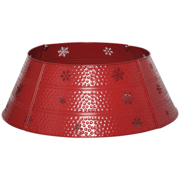 Homcom Christmas Tree Collar, Steel Tree Ring Skirt, Home Xmas Decoration For Christmas Tree, 26" X 26" X 9", Red Red Steel