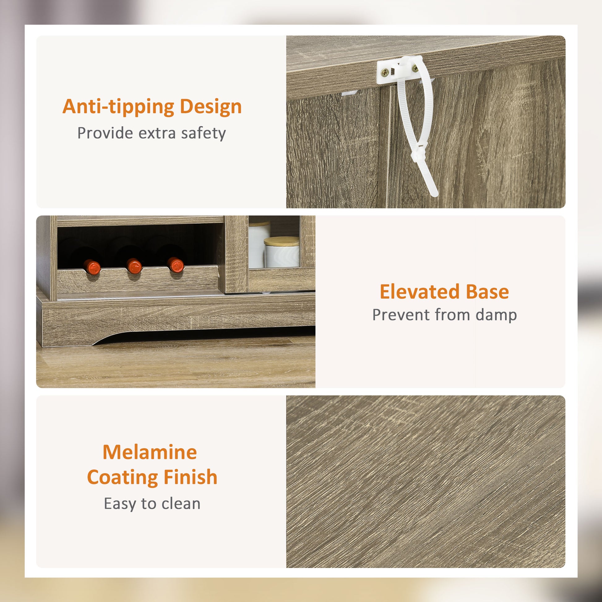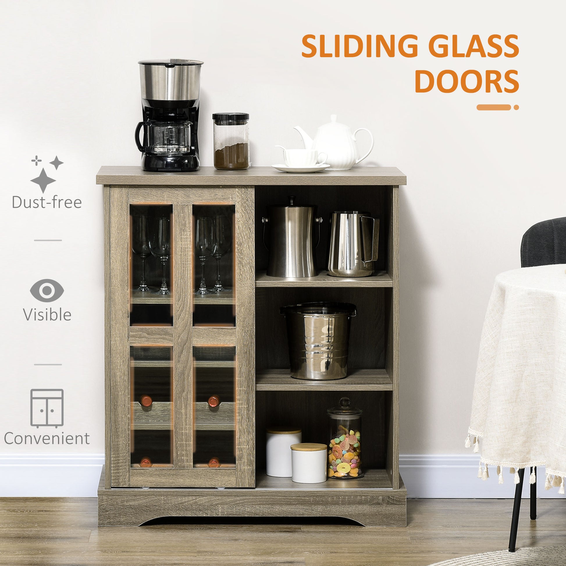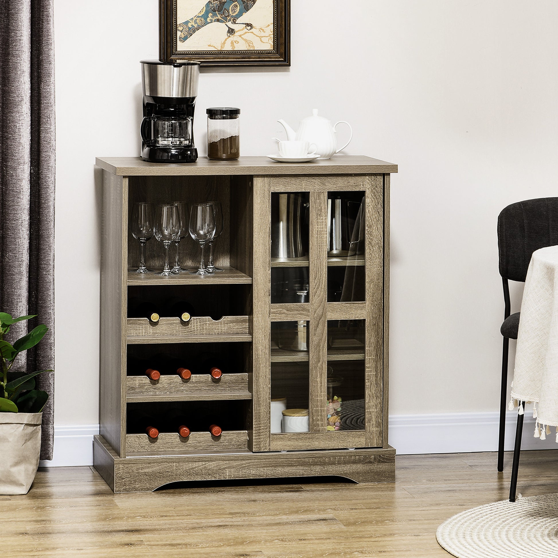 Homcom Coffee Bar Cabinet, 36" Sideboard Buffet Cabinet With Sliding Door, Wine Cabinet With Storage, Gray Gray Particle Board