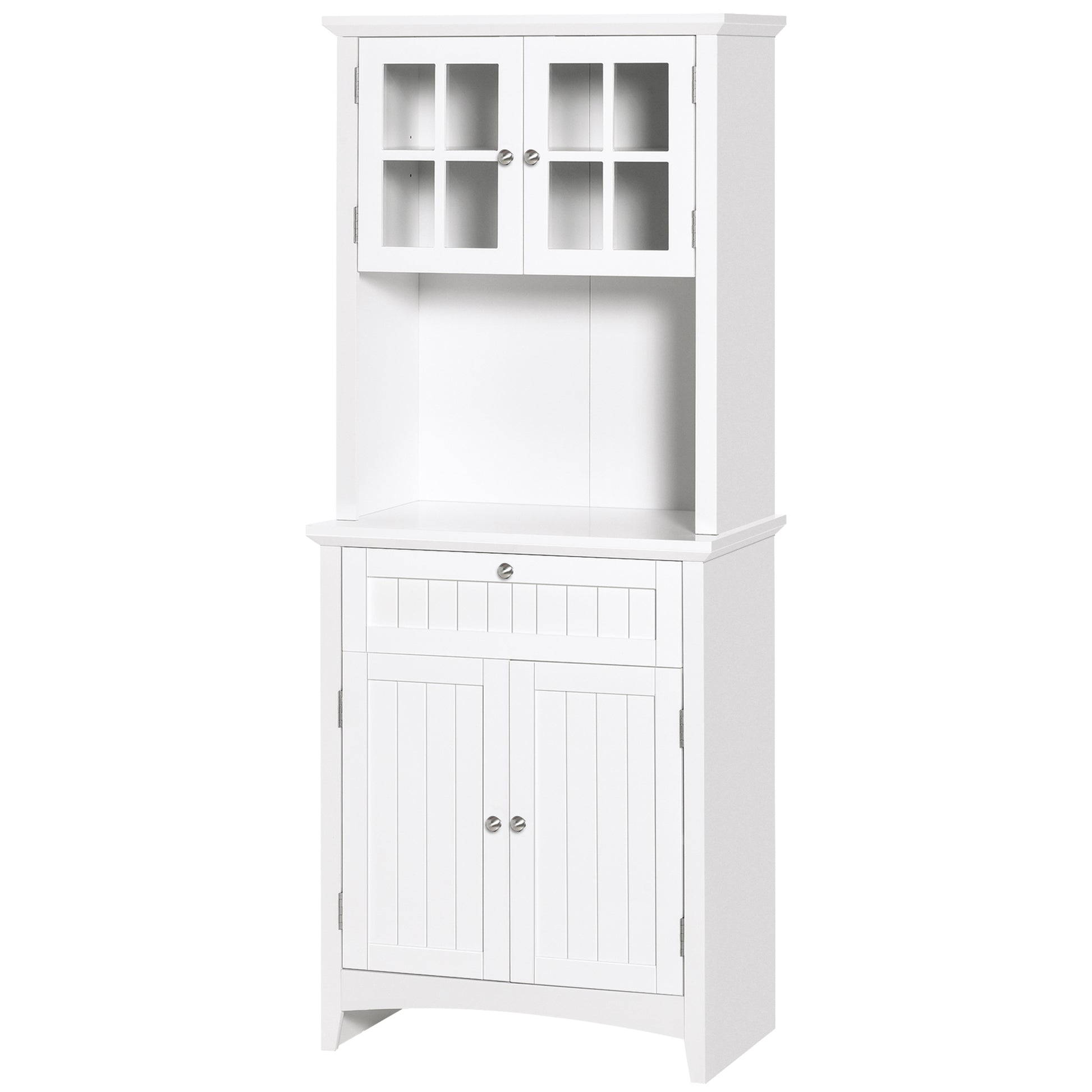 Homcom Elegant Buffet With Hutch, Kitchen Pantry Storage Cabinet With Framed Glass Door Drawer And Microwave Space, White White Mdf