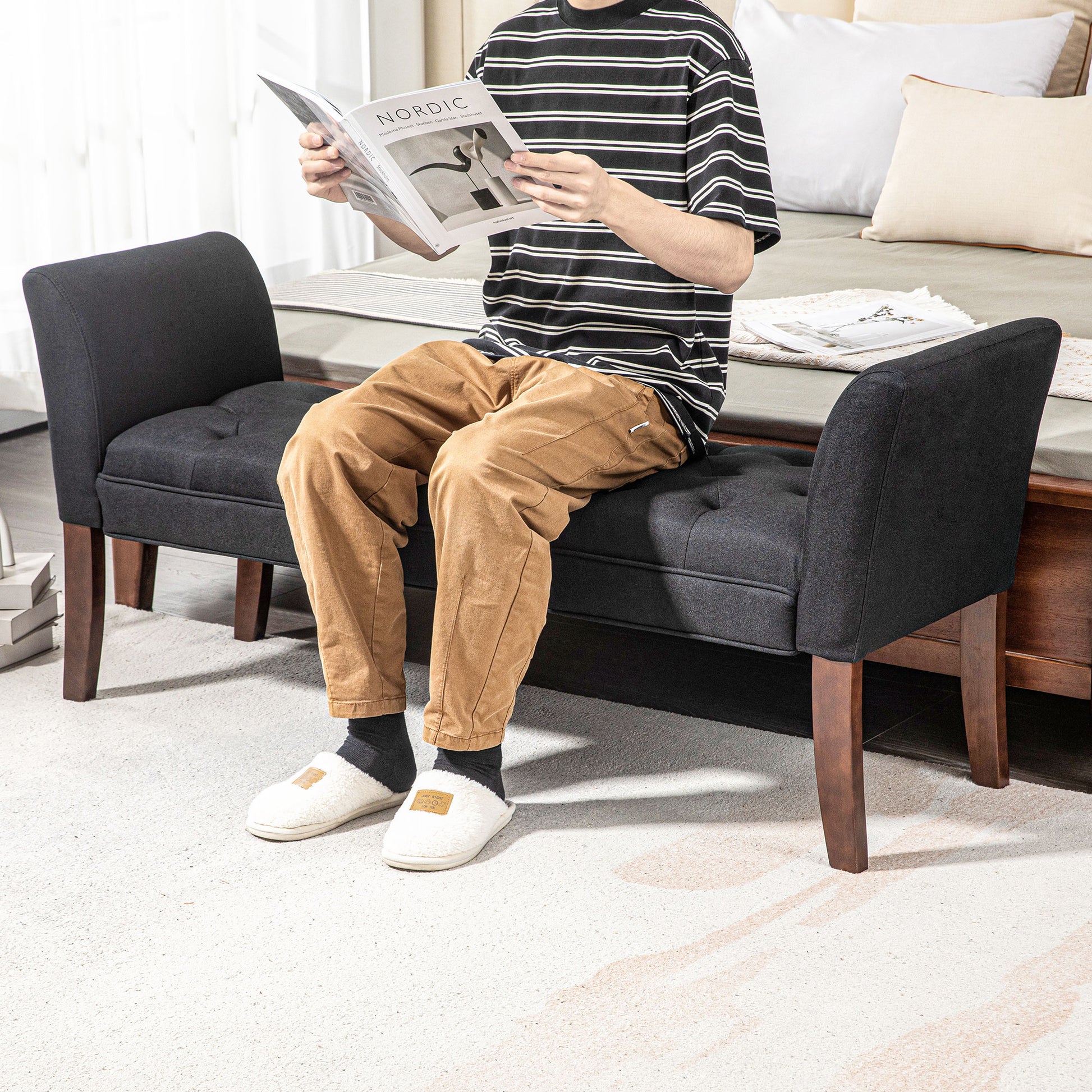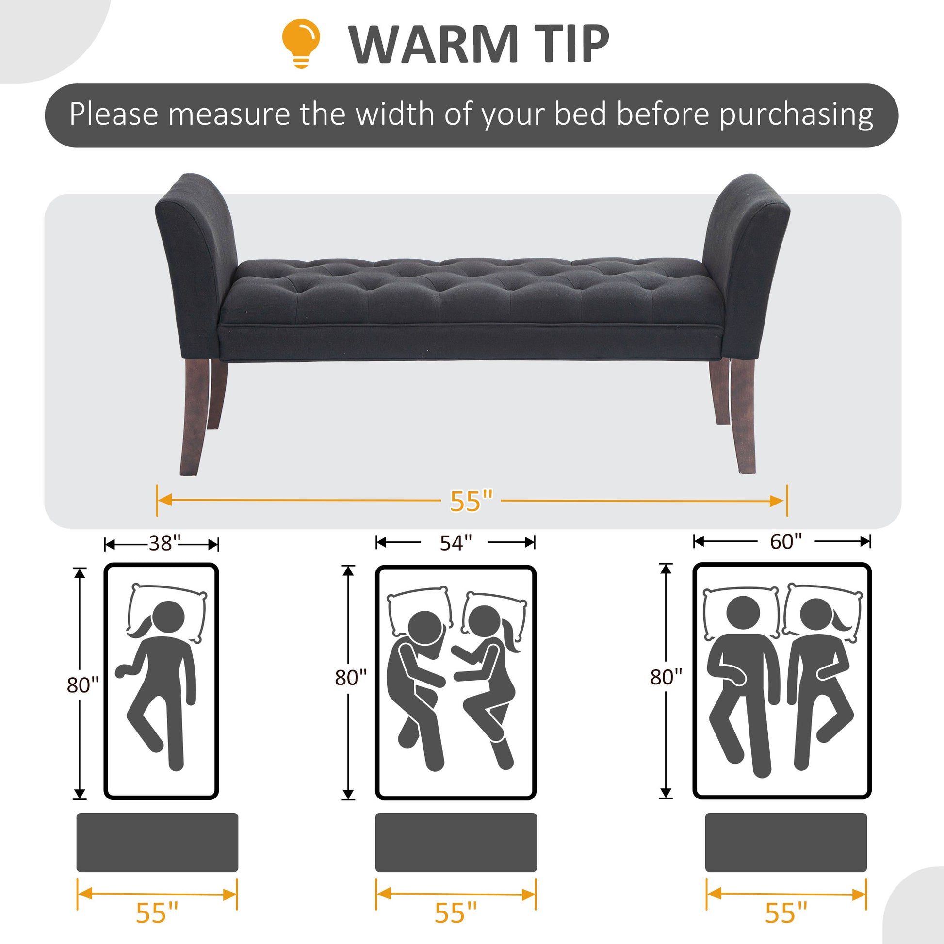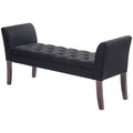 Homcom End Of Bed Bench With Button Tufted Design, Upholstered Bedroom Entryway Bench With Arms And Solid Wood Legs For Bedroom, Black Black Wood
