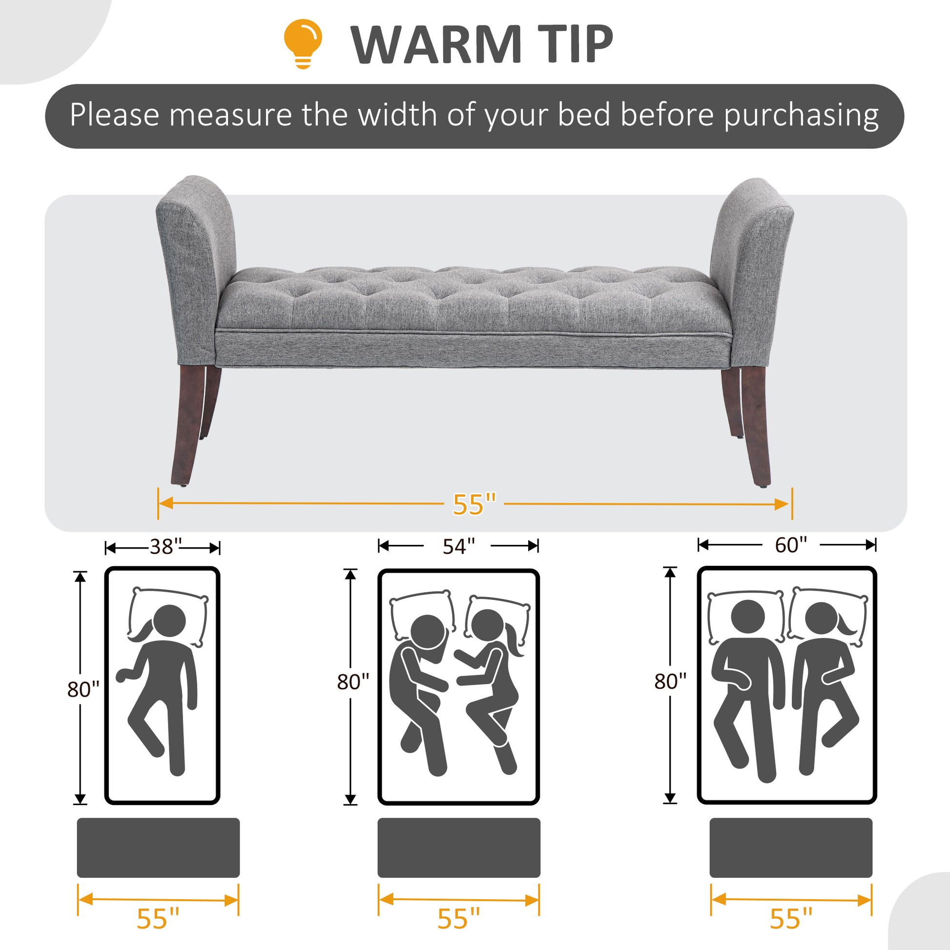 Homcom End Of Bed Bench With Button Tufted Design, Upholstered Bedroom Entryway Bench With Arms And Solid Wood Legs For Bedroom, Dark Gray Dark Gray Wood
