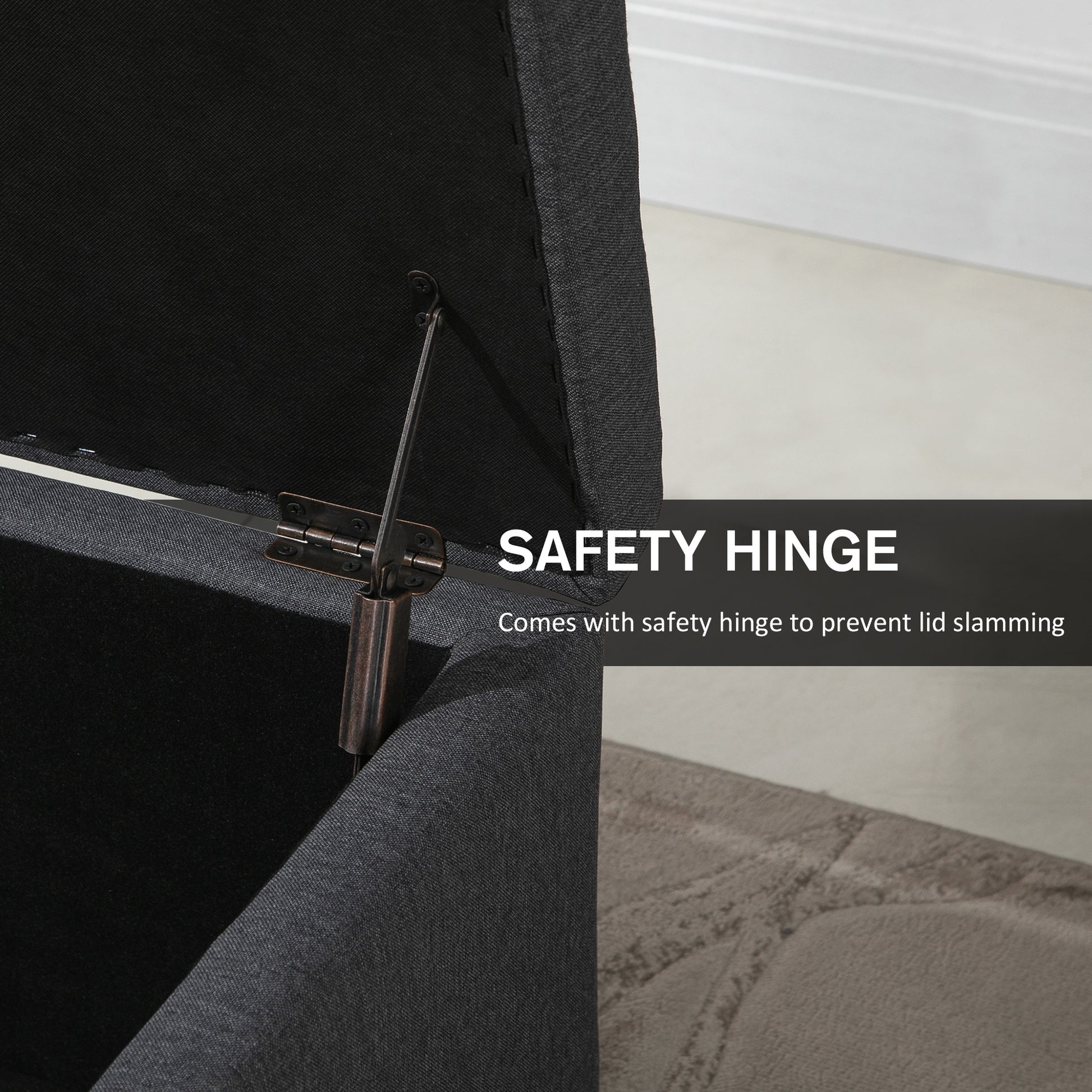 Homcom Fabric Tufted Storage Ottoman With Flip Top Seat Lid, Metal Hinge And Stable Eucalyptus Wood Frame For Living Room, Entryway, Or Bedroom, Grey Gray Plastic