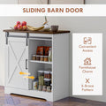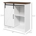 Homcom Farmhouse Coffee Bar Cabinet, 33" Buffet Sideboard With Sliding Barn Door And Adjustable Shelf, Kitchen Buffet Cabinet, White White Particle Board