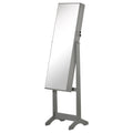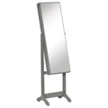 Homcom Floor Standing Jewelry Cabinet, Lockable Jewelry Organizer With Full Length Mirror, And 3 Adjustable Angles, Grey Grey Mdf