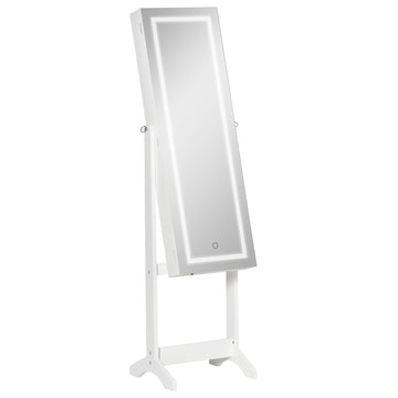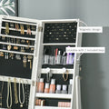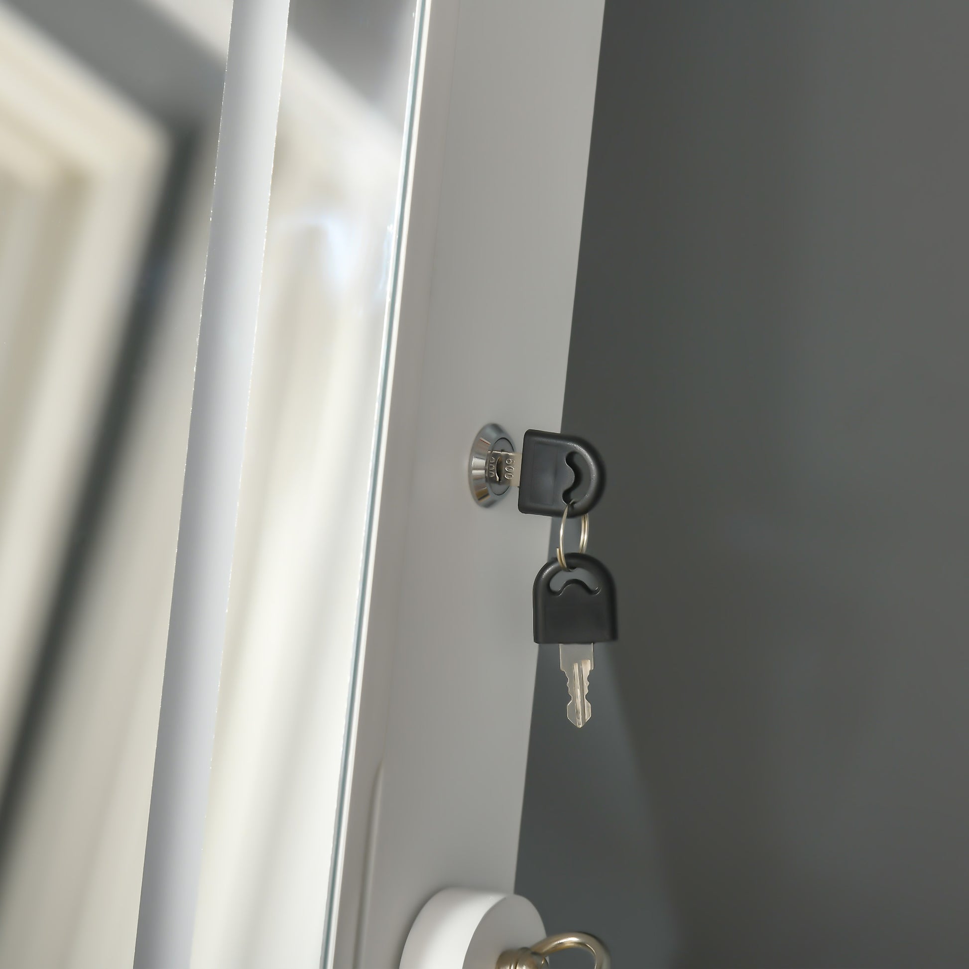 Homcom Floor Standing Jewelry Cabinet With Led Light, Lockable Jewelry Organizer With Full Length Mirror, And 4 Adjustable Angles, White White Mdf Glass