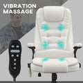 Homcom High Back Vibration Massage Office Chair With 6 Vibration Points, Heated Reclining Pu Leather Computer Chair With Armrest And Remote, White White Pu