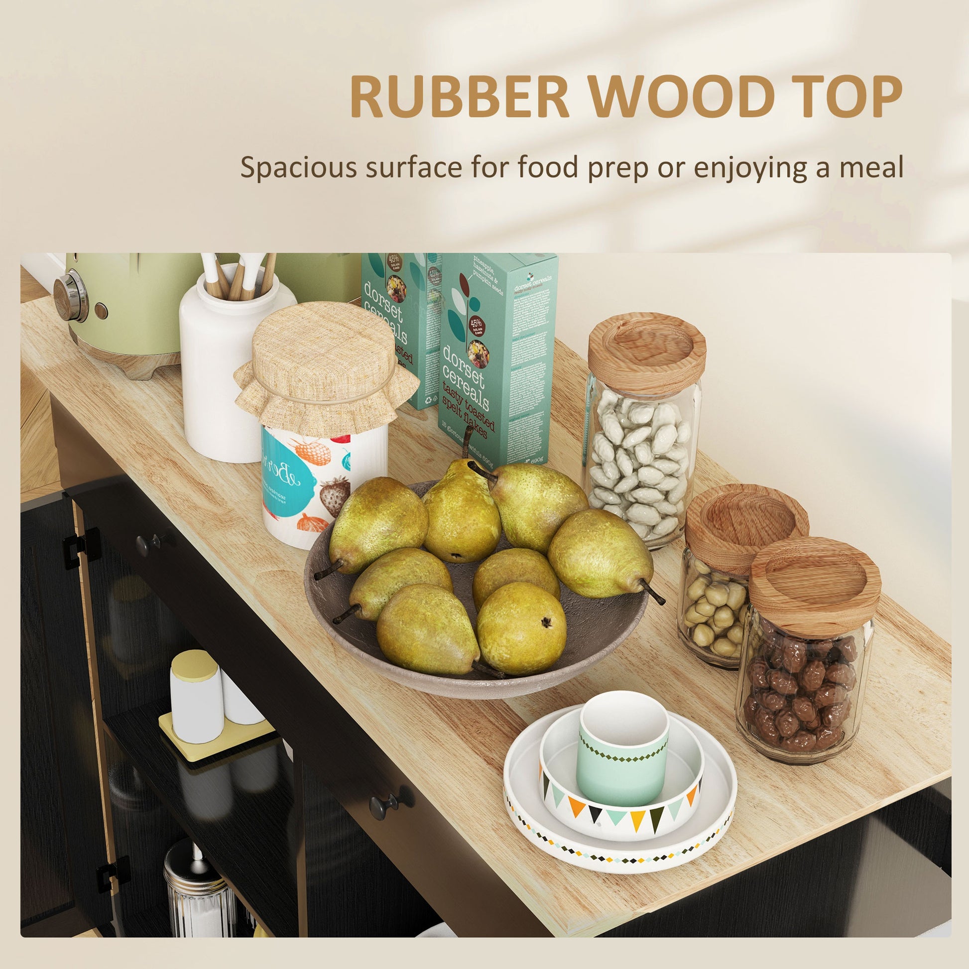 Homcom Kitchen Island With Storage, Farmhouse Rolling Kitchen Island Cart On Wheels With Drawer, 2 Cabinets, Rubberwood Top, Spice Rack, Towel Racks And 2 Hooks, Black Black Rubber Wood