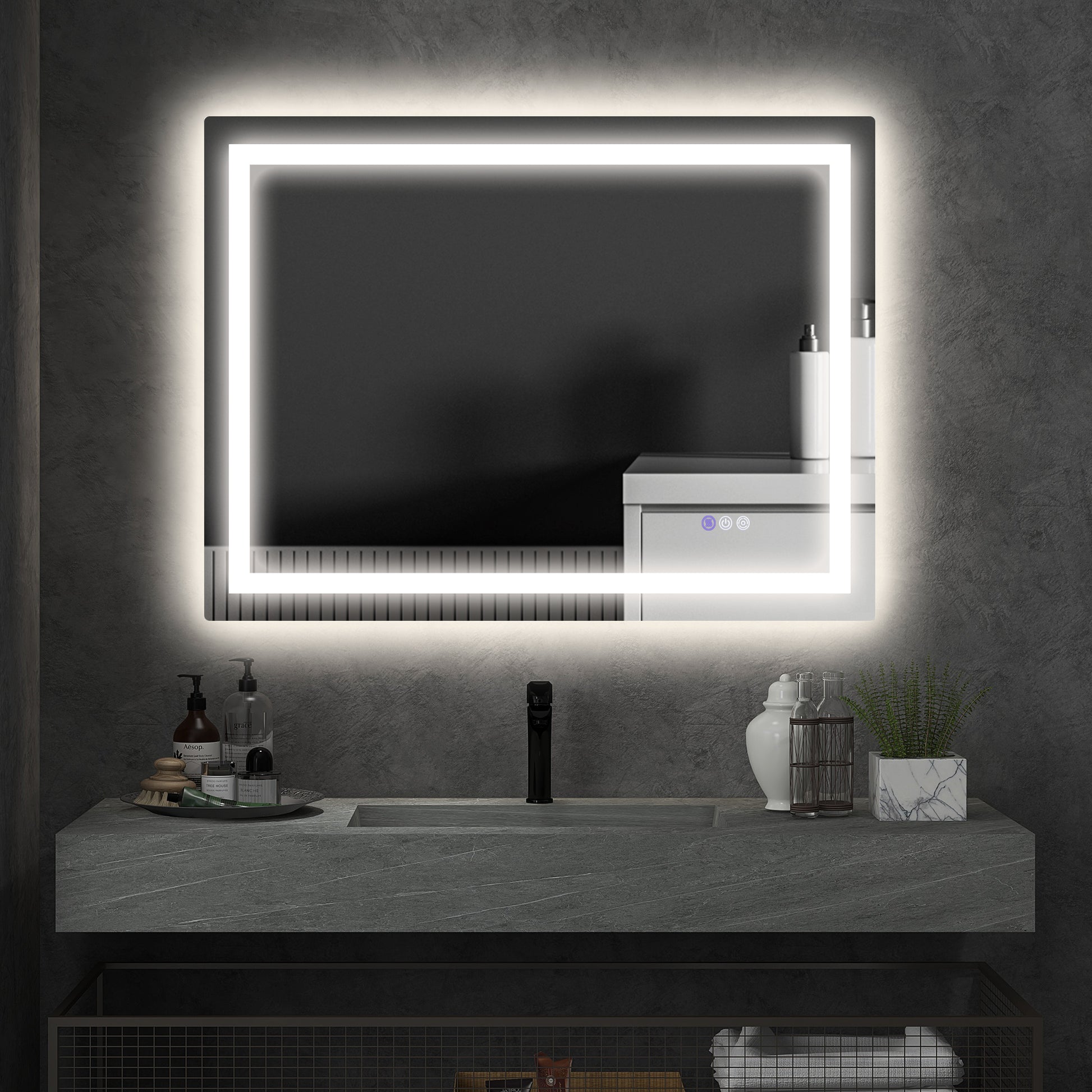 Homcom Led Bathroom Mirror With Lights, 47" X 35" Backlit Front Lit Led Mirror For Bathroom, Anti Fog, Memory, Infinite Color Temperature, Wall Mounted Dimmable Vanity Mirror, Horizontal Vertical