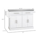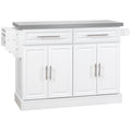 Homcom Rolling Kitchen Island With Storage, Portable Kitchen Cart With Stainless Steel Top, 2 Drawers, Spice, Knife And Towel Rack And Cabinets, White White Mdf