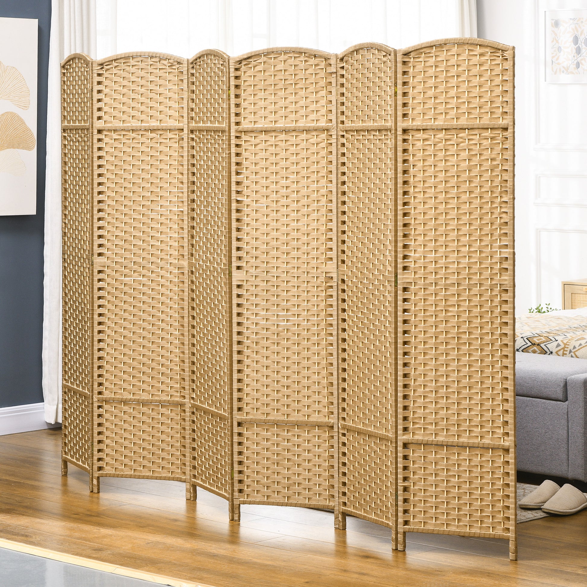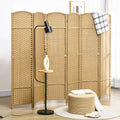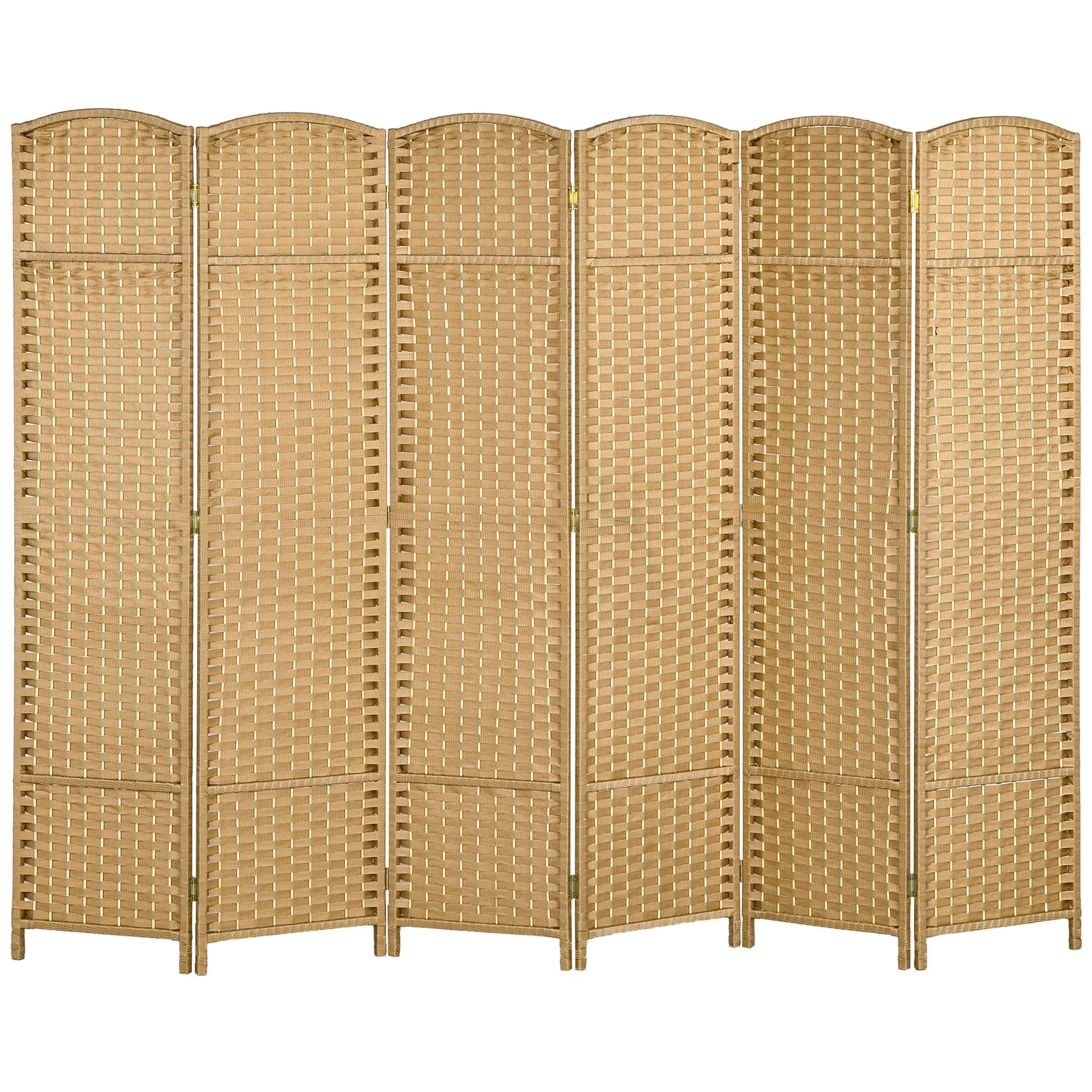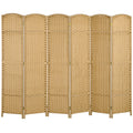 Homcom Room Divider, 6 Panel Folding Privacy Screen, 5.6' Tall Freestanding Wall Partition For Home Office, Bedroom, Nature Wood Natural Wood Polypropylene