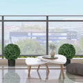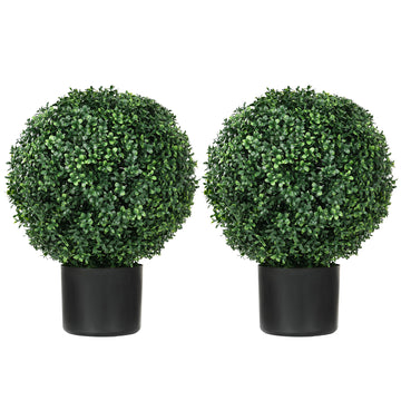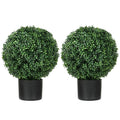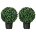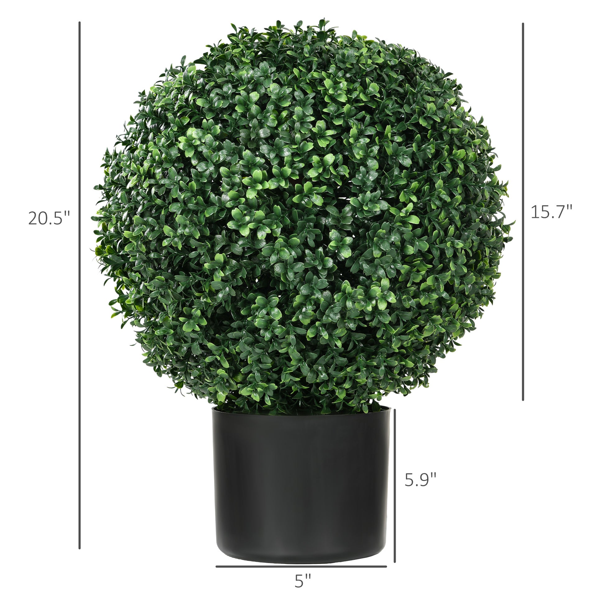 Homcom Set Of 2 20.5" Artificial Ball Boxwood Topiary Trees With Pot, Indoor Outdoor Fake Plants For Home Office & Living Room Decor Green Plastic