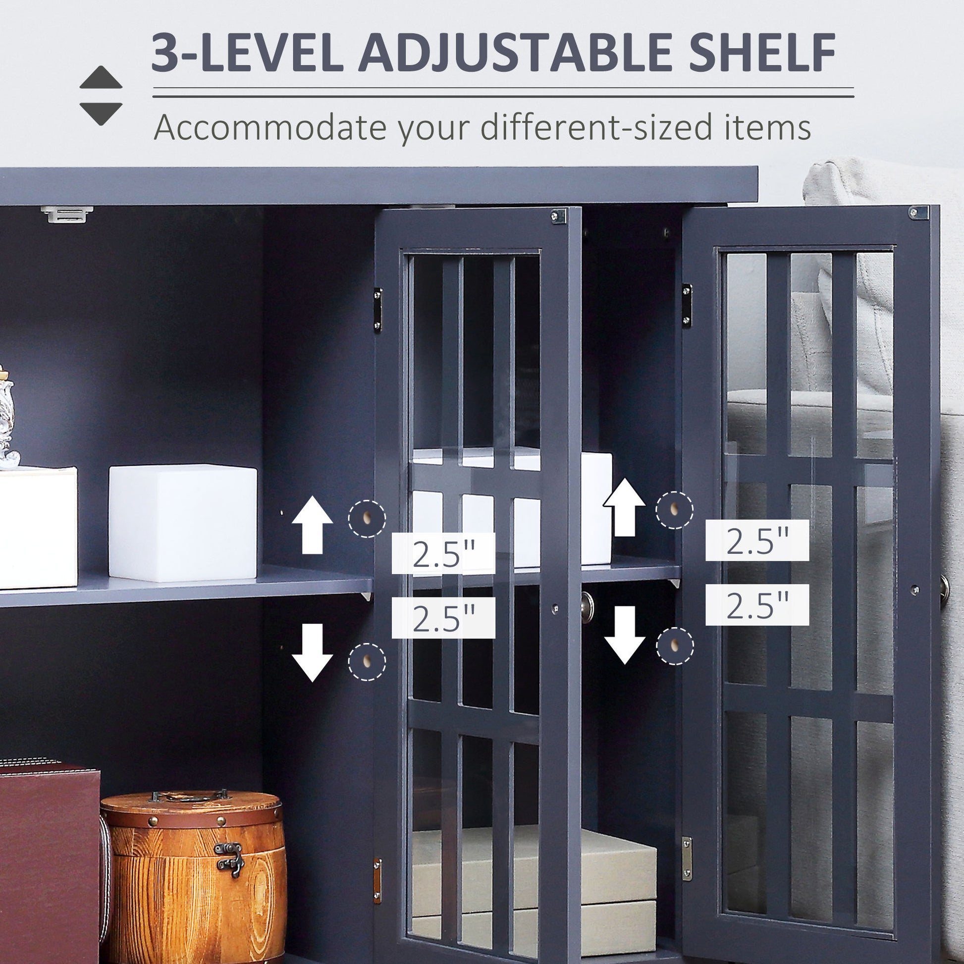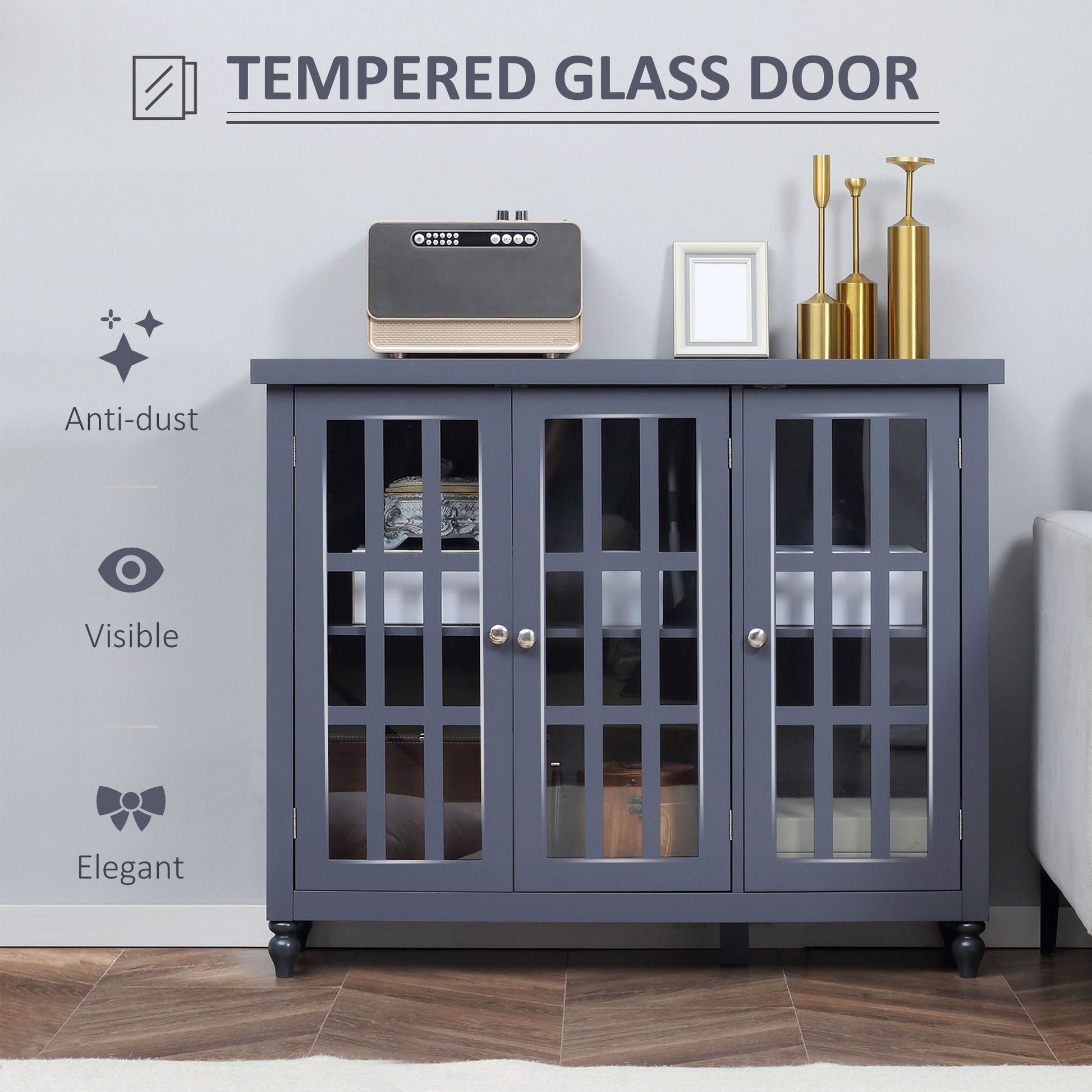 Homcom Sideboard Buffet Cabinet, Credenza, Coffee Bar Cabinet With Storage, Glass Doors And Adjustable Shelves, Gray Gray Mdf