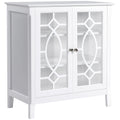Homcom Sideboard Buffet Cabinet, Kitchen Storage Cabinet, Double Glass Door Accent Cabinet With Adjustable Shelves, White White Mdf