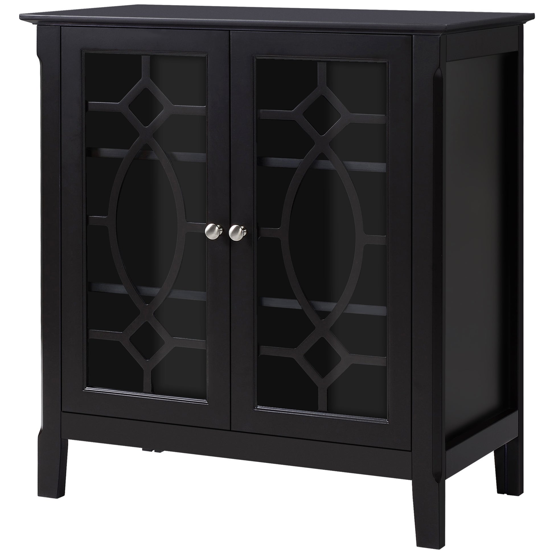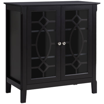 Homcom Sideboard Buffet Cabinet, Kitchen Storage Cabinet, Double Glass Door Accent Cabinet With Adjustable Shelves, Espresso Espresso Mdf