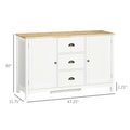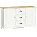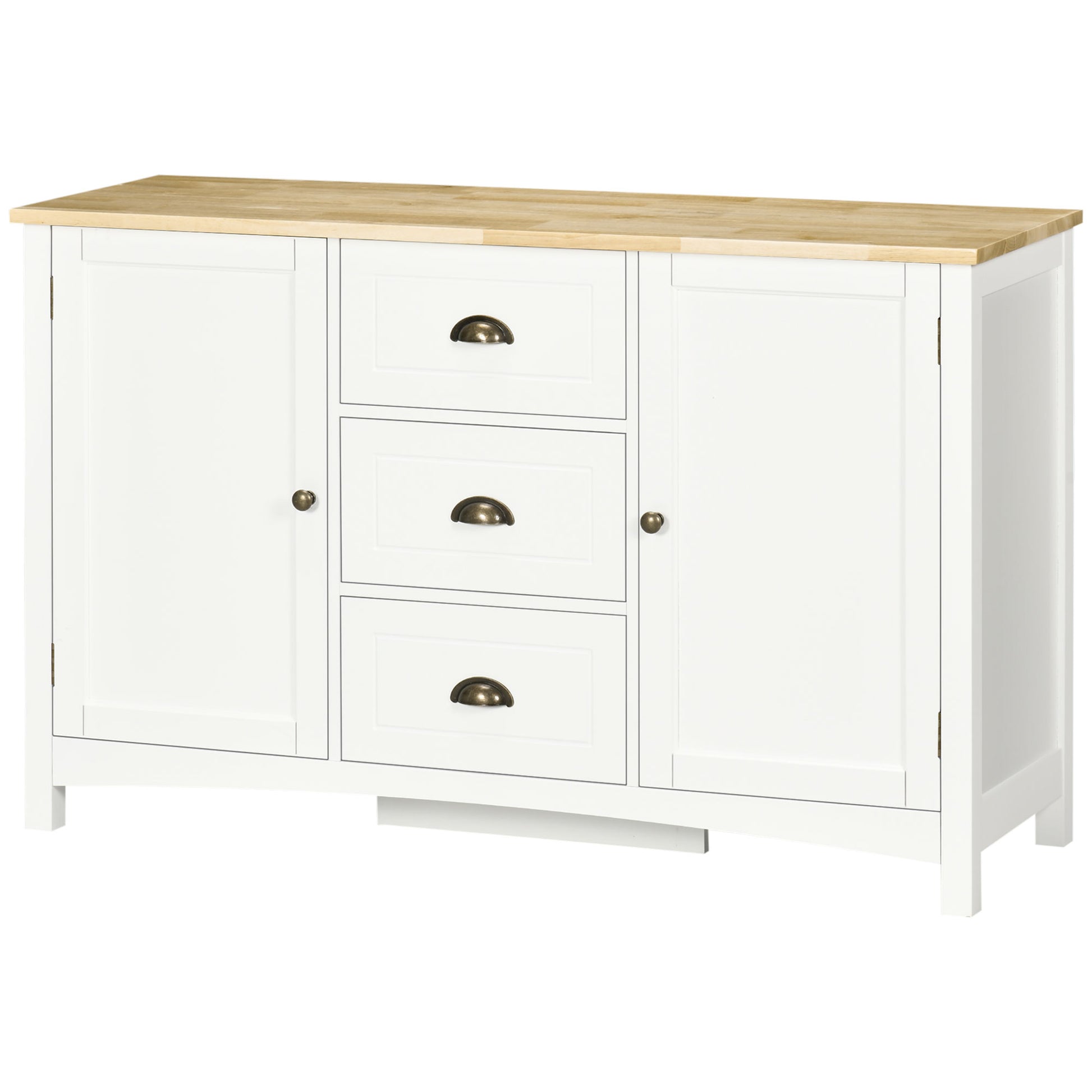 Homcom Sideboard Buffet Cabinet, Retro Kitchen Cabinet, Coffee Bar Cabinet With Rubber Wood Top, Drawers, Adjustable Shelves For Living Room, Entryway, White White Mdf