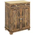 Homcom Sideboard With Solid Wood Countertop, Modern Kitchen Storage Cabinet, Coffee Bar Cabinet With 2 Drawers, Doors And Adjustable Shelf, Rustic Brown Rustic Brown Engineered Wood