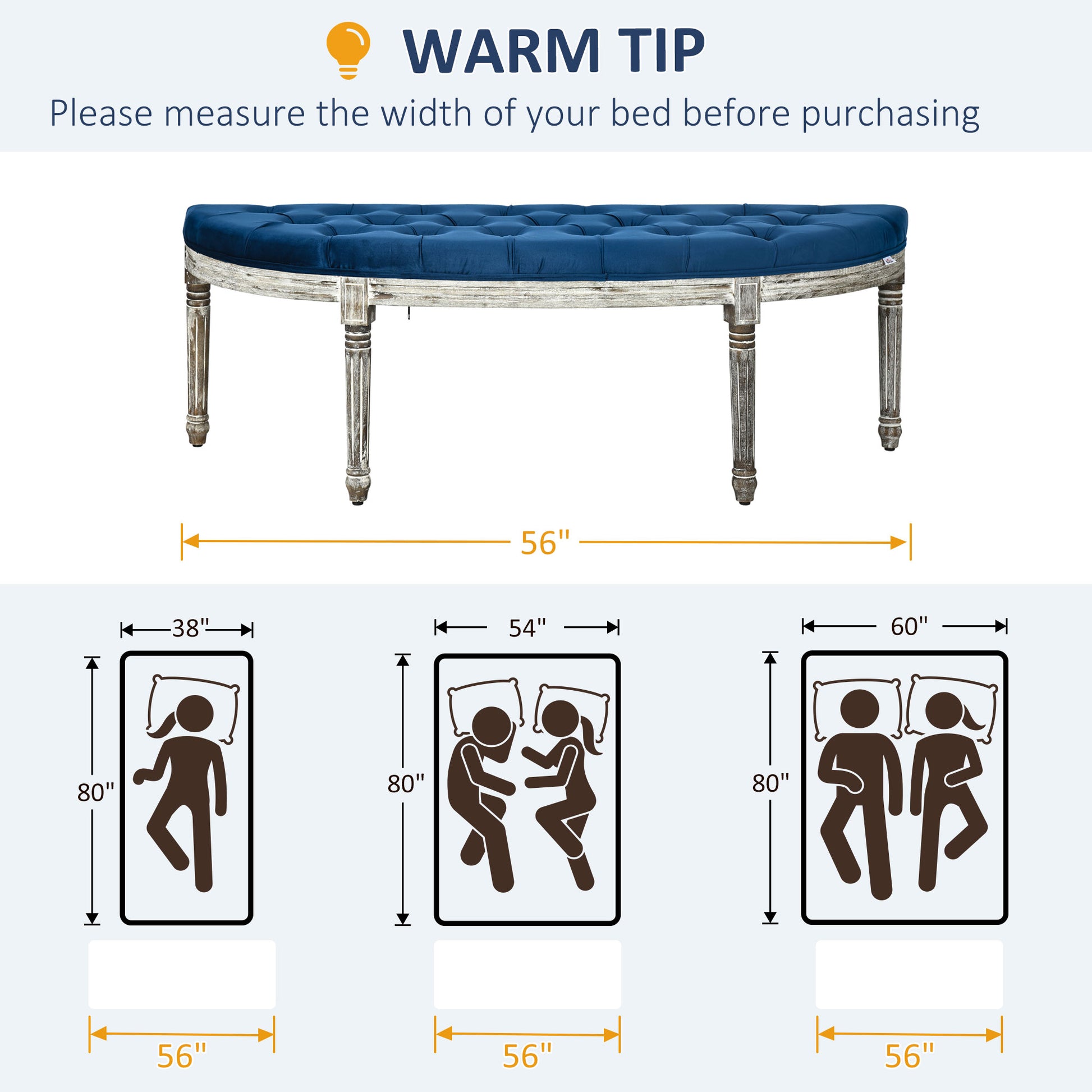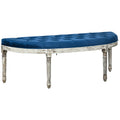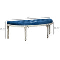 Homcom Vintage Semi Circle End Of Bed Bench, Upholstered Bedroom Entryway Bench With Tufted Velvet Touch Fabric With Rubberwood Legs, Blue Blue Polyester