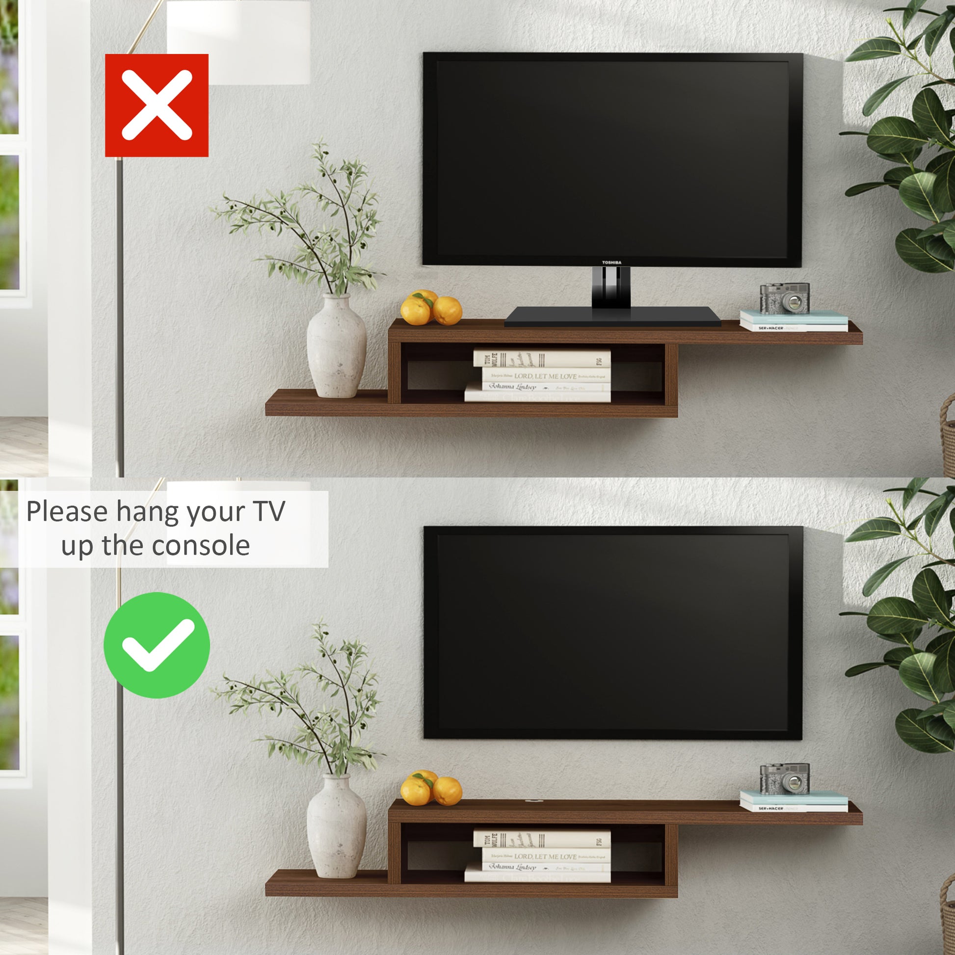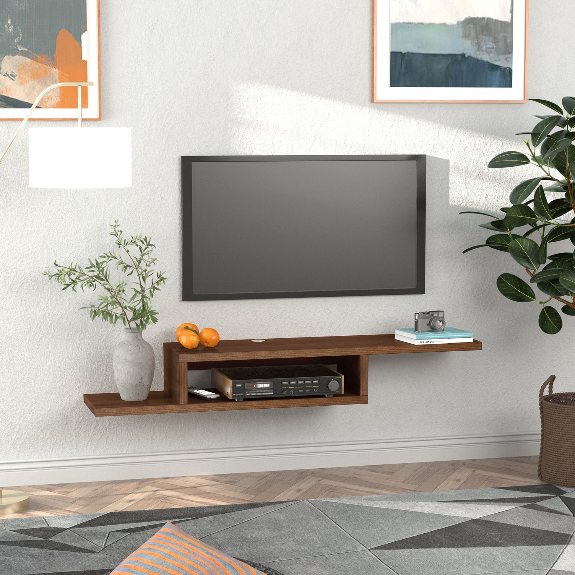 Homcom Wall Mounted Media Console, Floating Stand Component Shelf, Entertainment Center Unit, Walnut Wood 40 49 Inches Particle Board