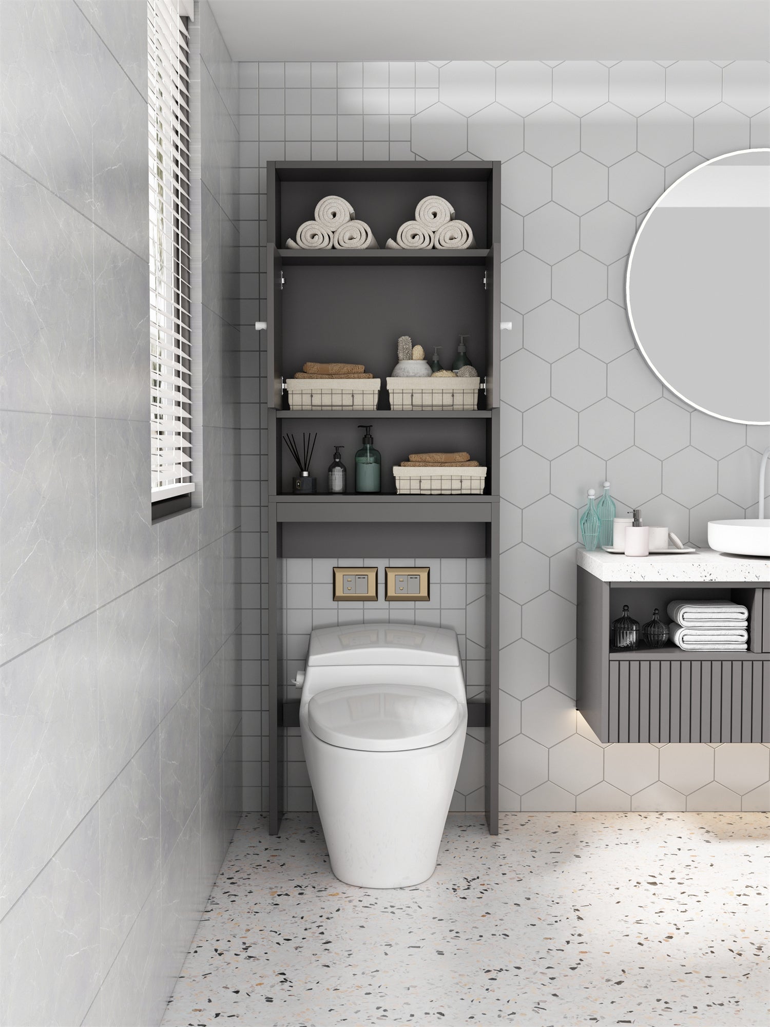 Home Bathroom Shelf Over The Toilet, Bathroom Spacesaver, Bathroom, Tollilet Storage Cabinet, Gray Gray Mdf