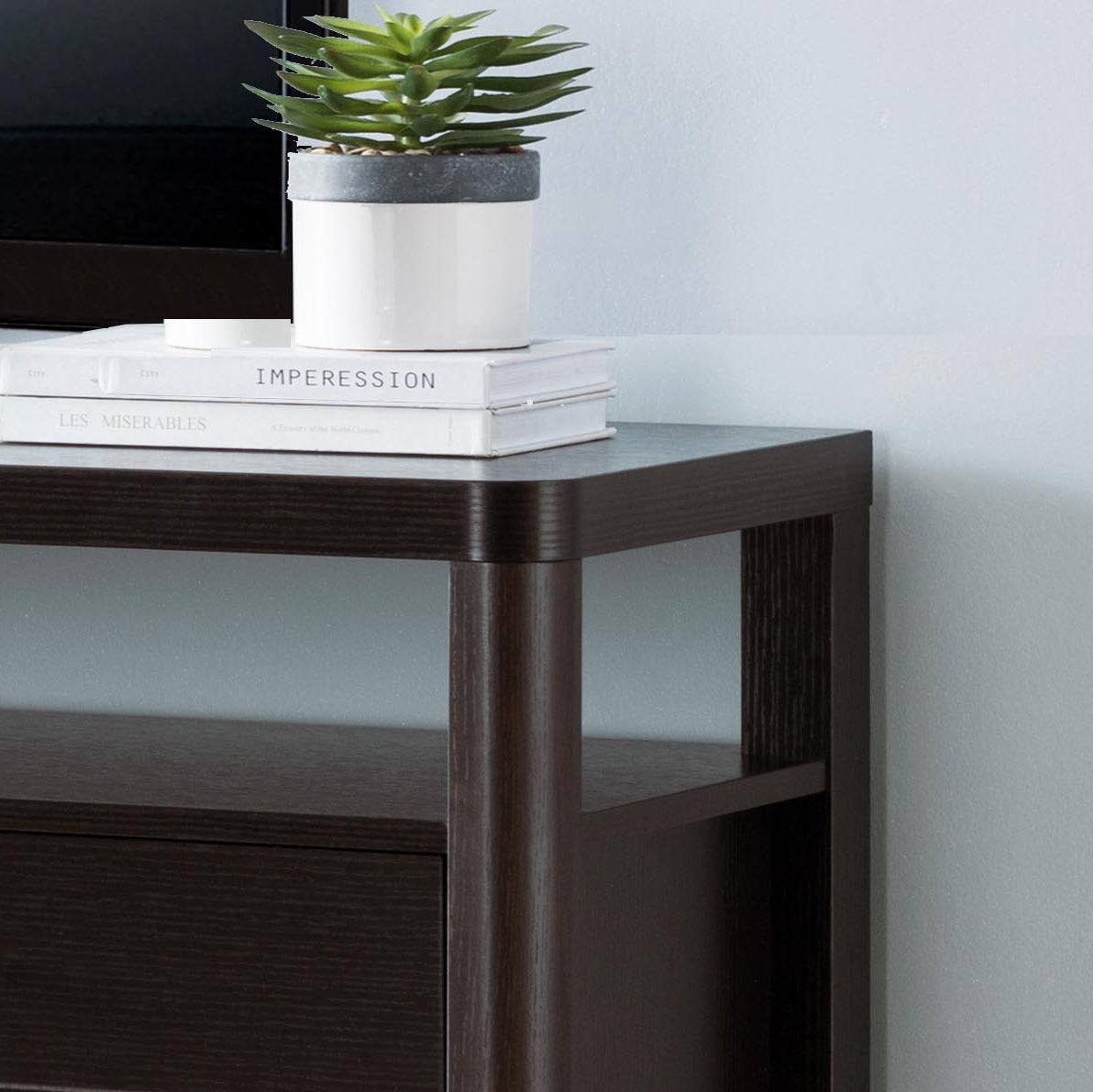 Home Entertainment Stand, Tv Stand With 4 Storage Drawers, Display Table In Red Cocoa Espresso 50 59 Inches Particle Board