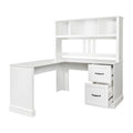 Home Office Computer Desk With Hutch, Antiqued White Finish White Mdf