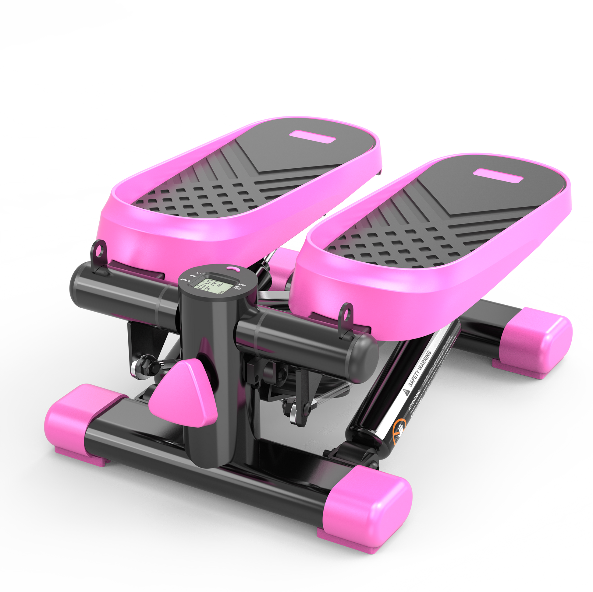 Home Office Exercise 330Lbs Capacity Mini Stepper With Resistance Bands And Lcd Monitor Pink Black Steel