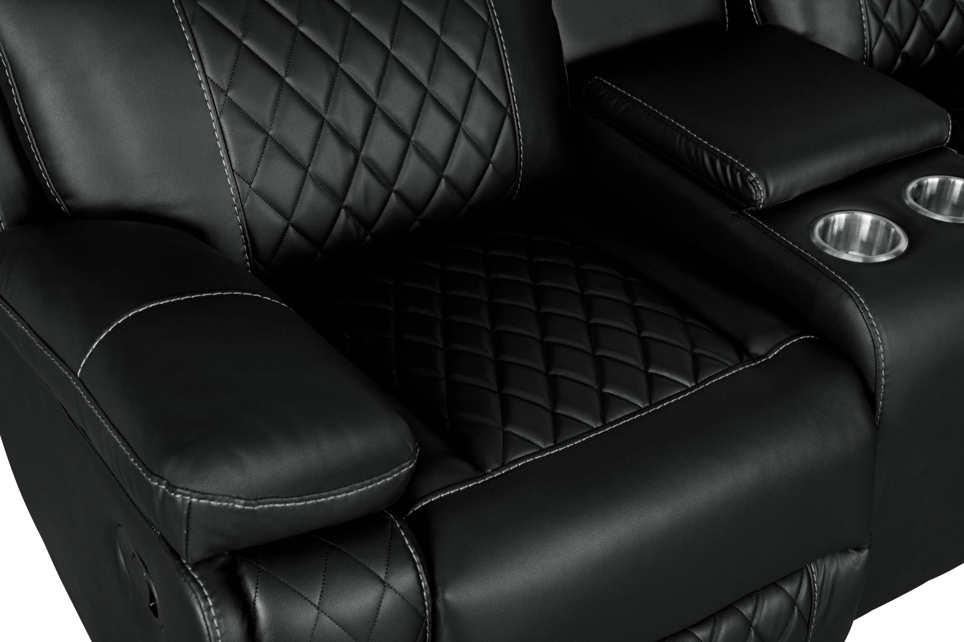 Home Theater Seating Manual Recliner With Cup Holder, Hide Away Storage Pu Reclining Sofa For Living Room, Home Theater, Black Black Foam Pu 5 Seat