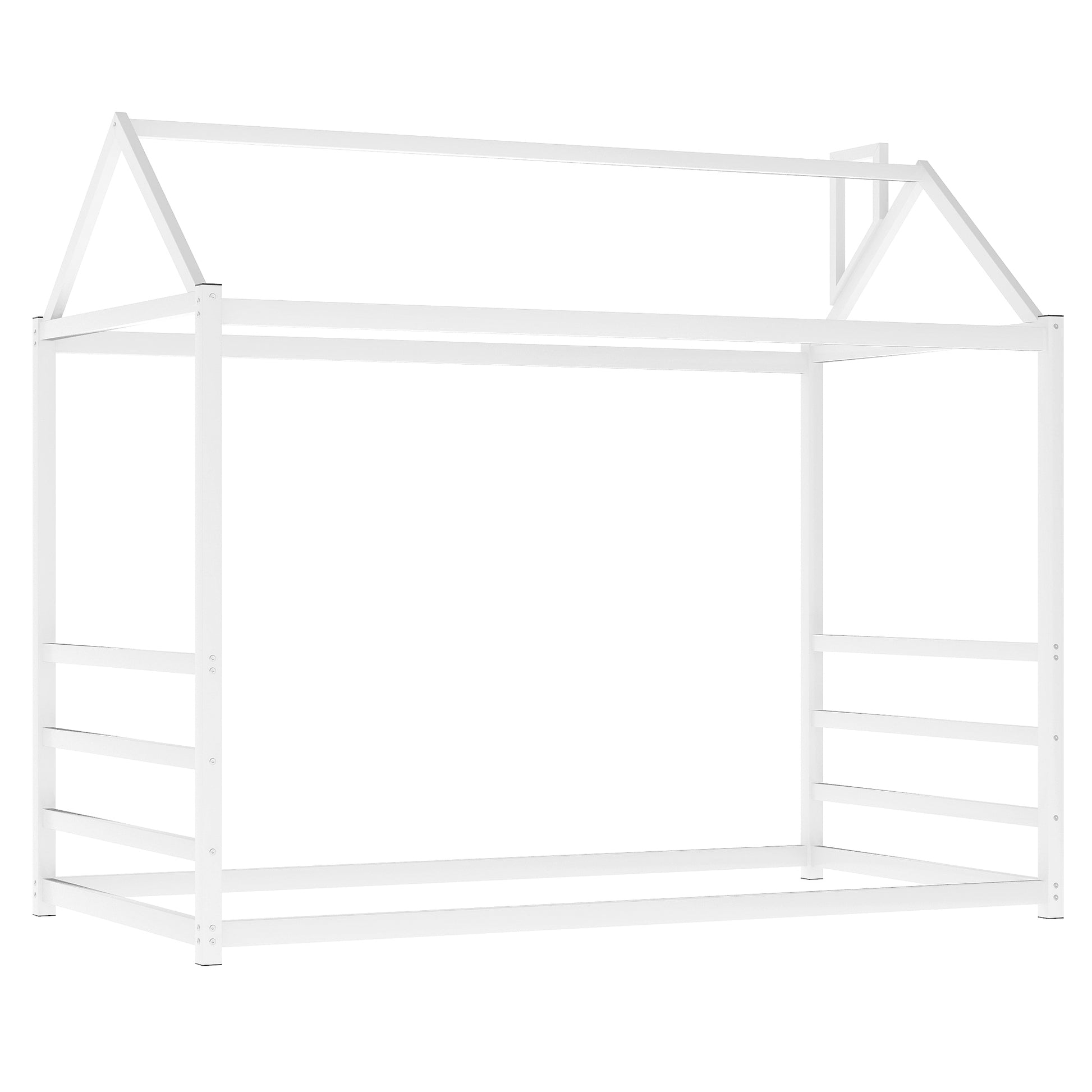 House Platform Bed With Roof And Chimney Design,White White Metal