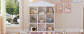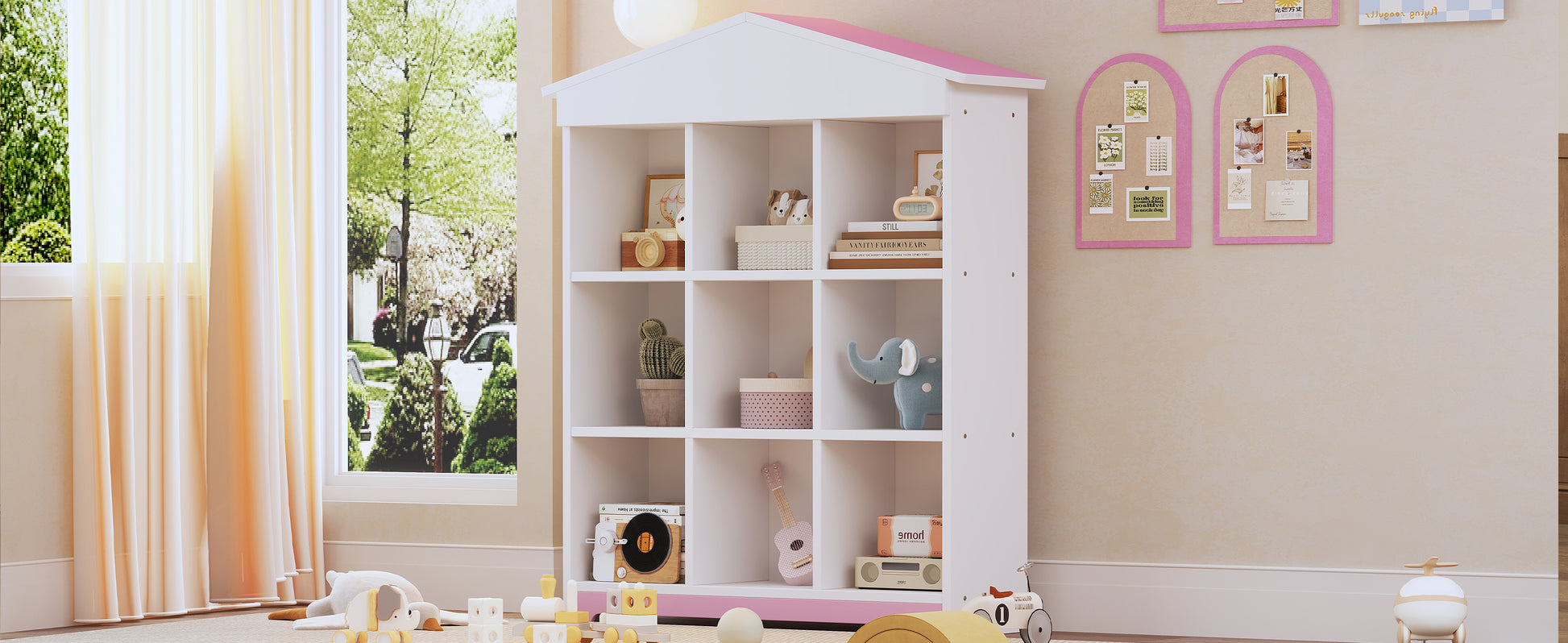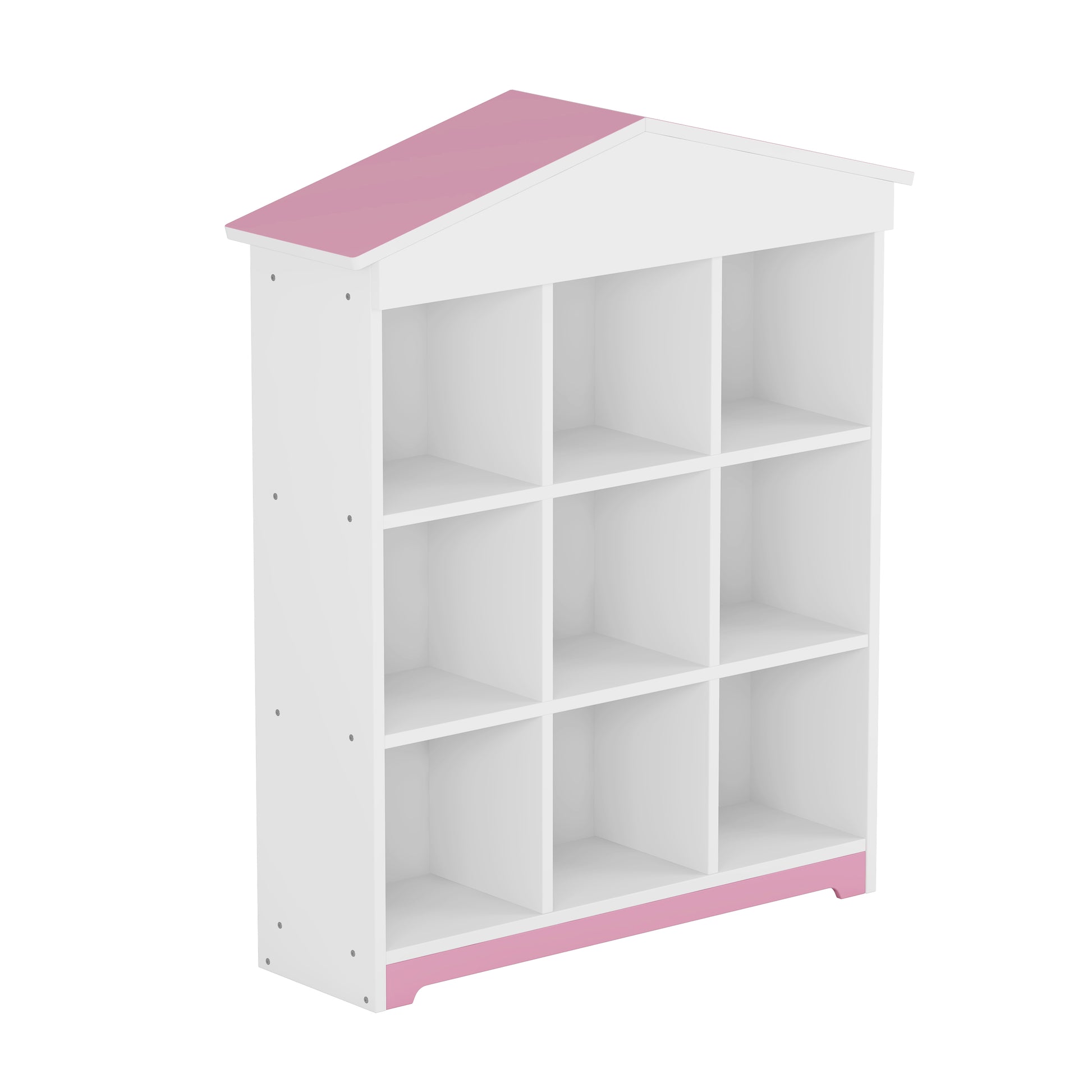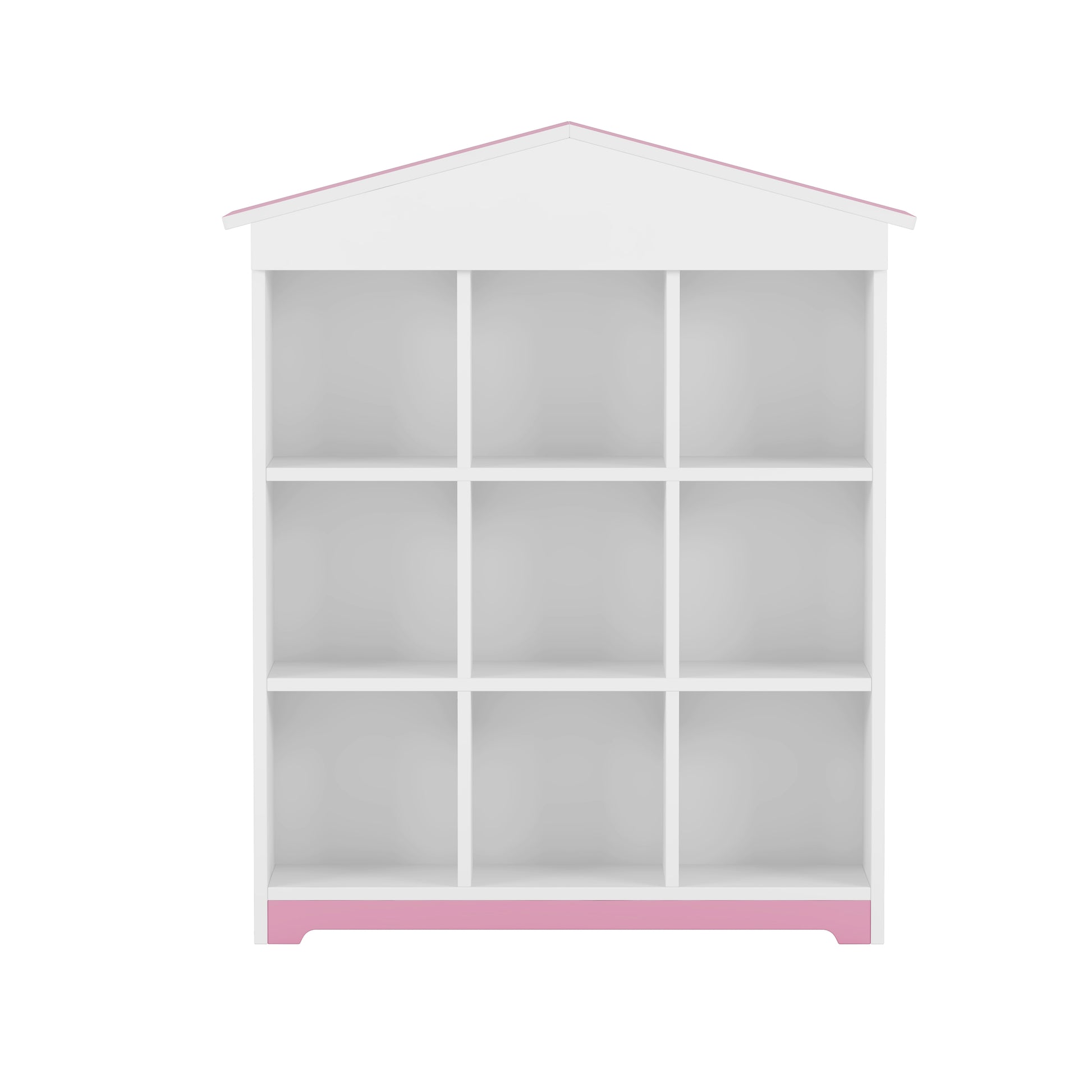 House Shaped Storage Rack With Nine Storage Compartments, Three Layer Storage Shelf With Colorblock Design, White Pink Pink White Particle Board