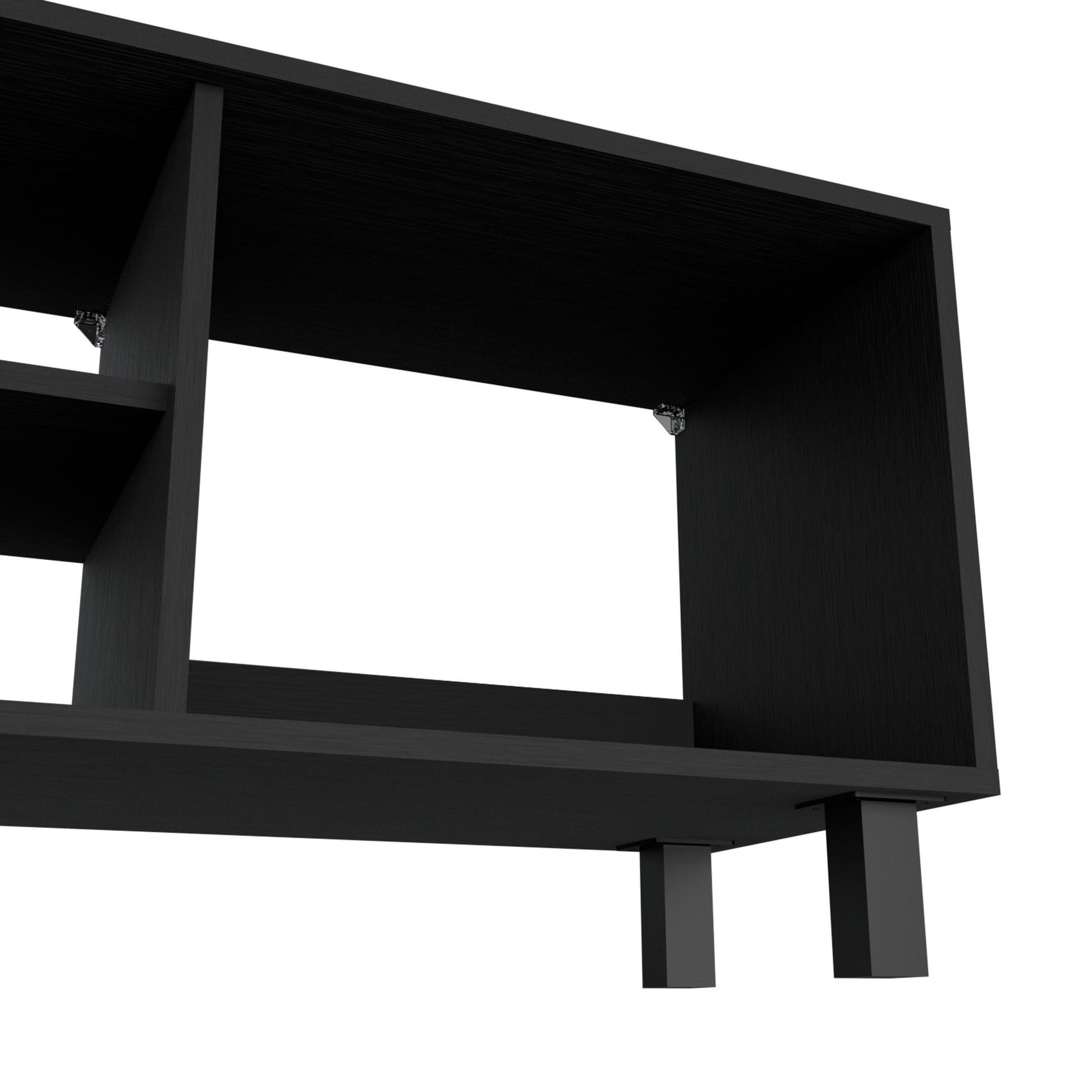 Hoven 2 Piece Living Room Set with Tv Rack and Coffee Table ,Black"The Hoven 2 Piece Living Room Set is a chic and well-coordinated answer to your entertainment and relaxation demands. With a sophisticated black-manufactured wood finish, this set comes with a matching coffee table and Tv rack anchored by solid steel legs. The Tv Rack is 55.2""w x 13.7""d, with a roomy top surface that can accommodate various Tv sizes. It has 2 open storage shelves on either side (17.5""w x 13.5""