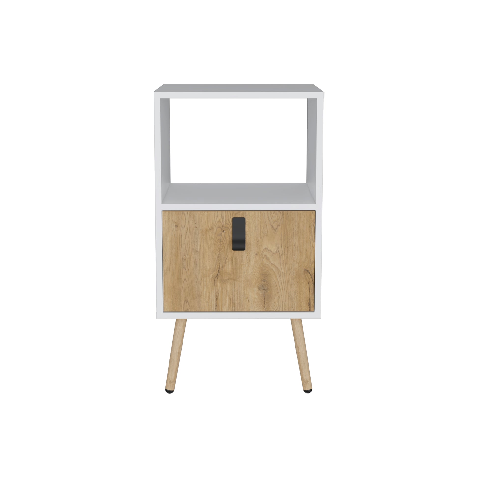 Name: Huna Tall Nightstand with Open Storage and Drawer in Modern Design