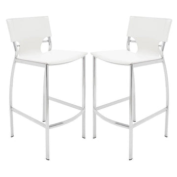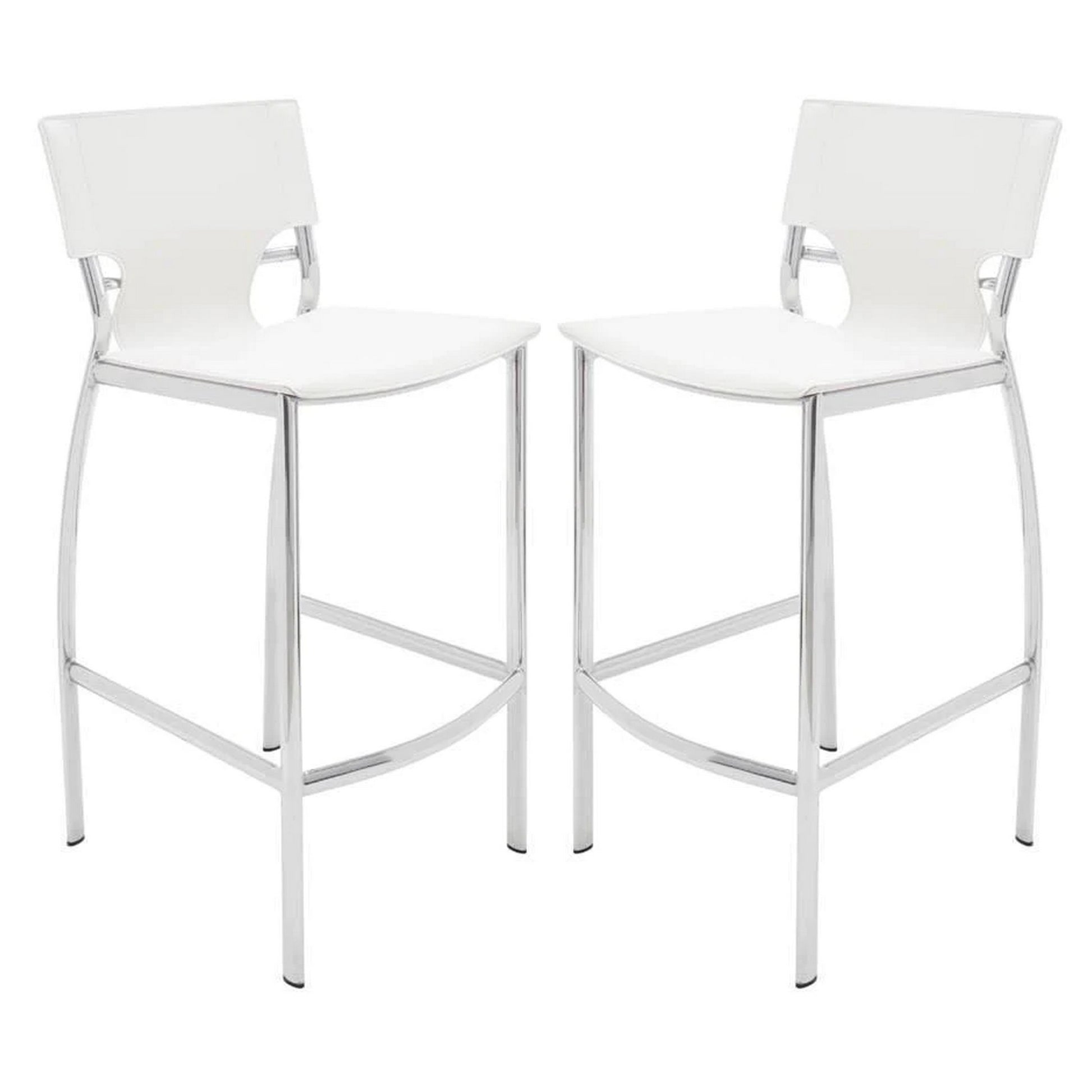 Illa 26 Inch Counter Height Chair, Set Of 2, Chrome Base, Vegan Leather, White White Metal
