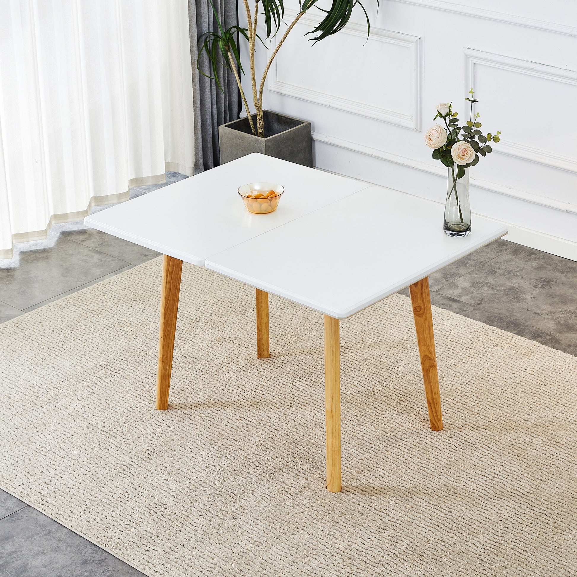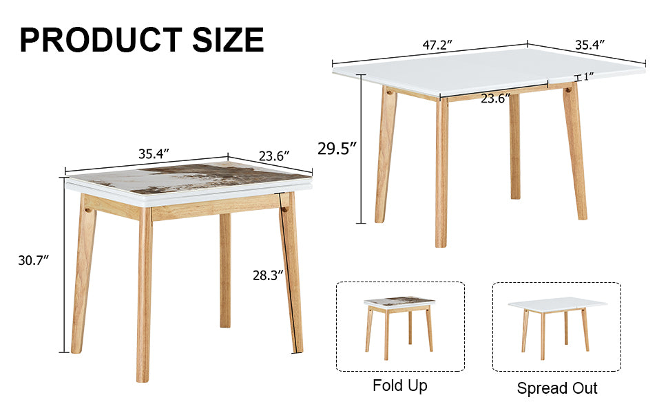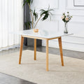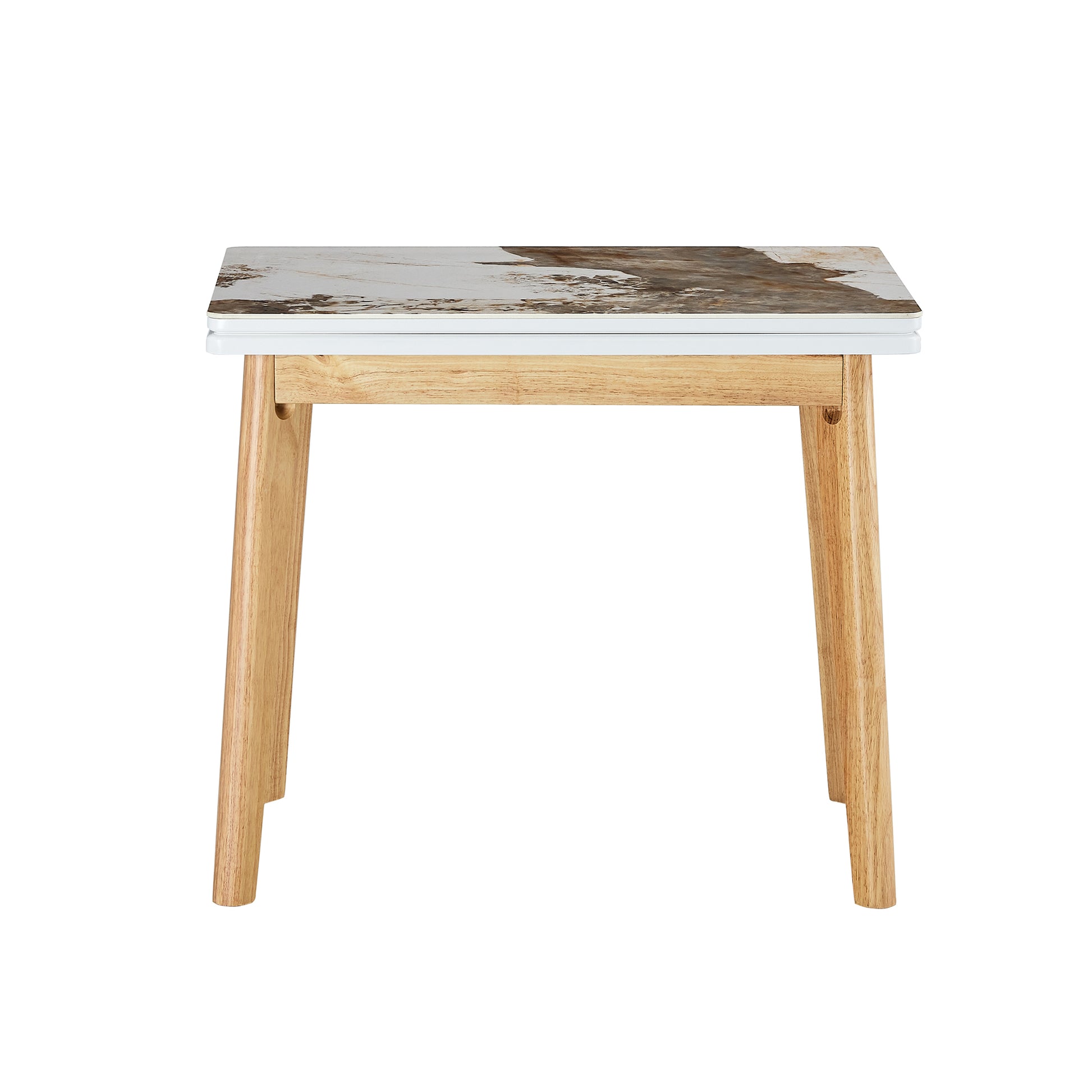 Imitation Marble White Sintered Stone Tabletop With Rubber Wooden Legs, Foldable Computer Desk, Foldable Office Desk, Suitable For Restaurants, Living Rooms, Terraces, Kitchens White Sintered Stone