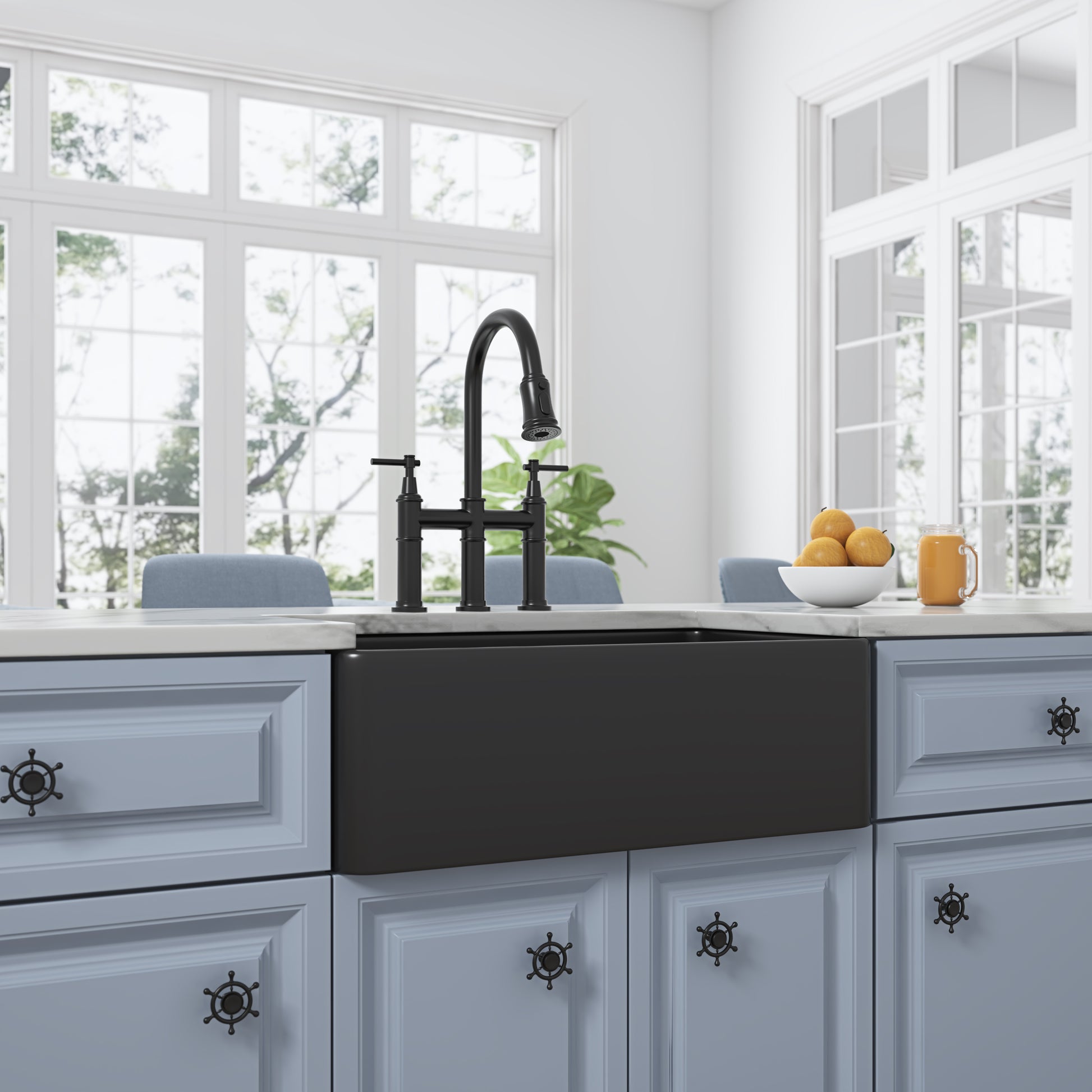 Inch White Farmhouse Sink Deep Apron Sink Undermount Farmhouse Kitchen Sink Single Farm Sink Matt Black Ceramic