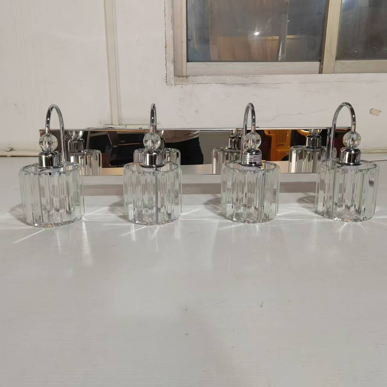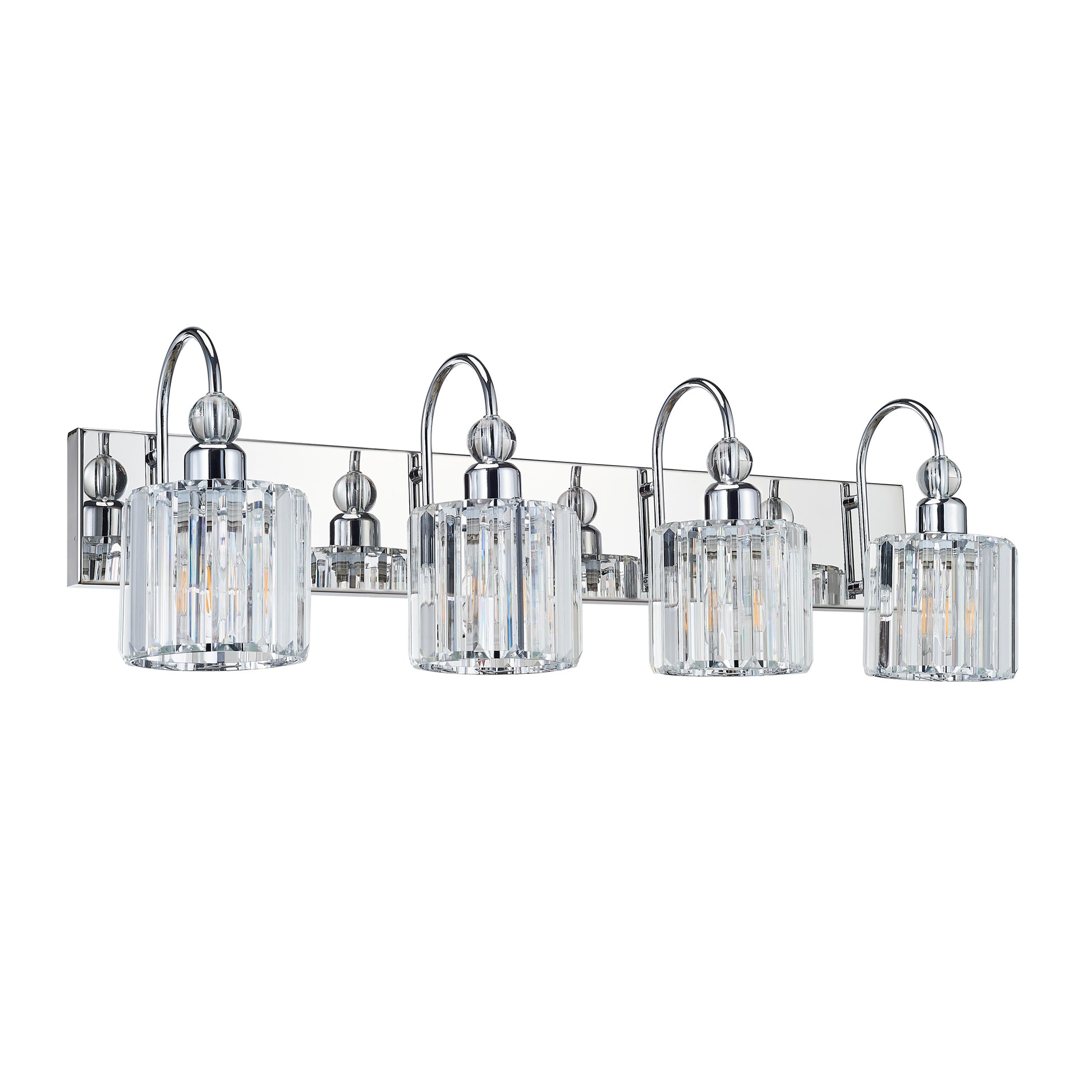 Indoor Decorative Lighting Iron Stainless Steel Crystal Bathroom Vanity Light Chrome Color 4 Light E26 Bulb Wall Lights Chrome Modern Crystal