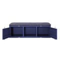 Industrial Metal And Fabric Bench With Open Storage, Blue And Gray Blue Grey Fabric Metal
