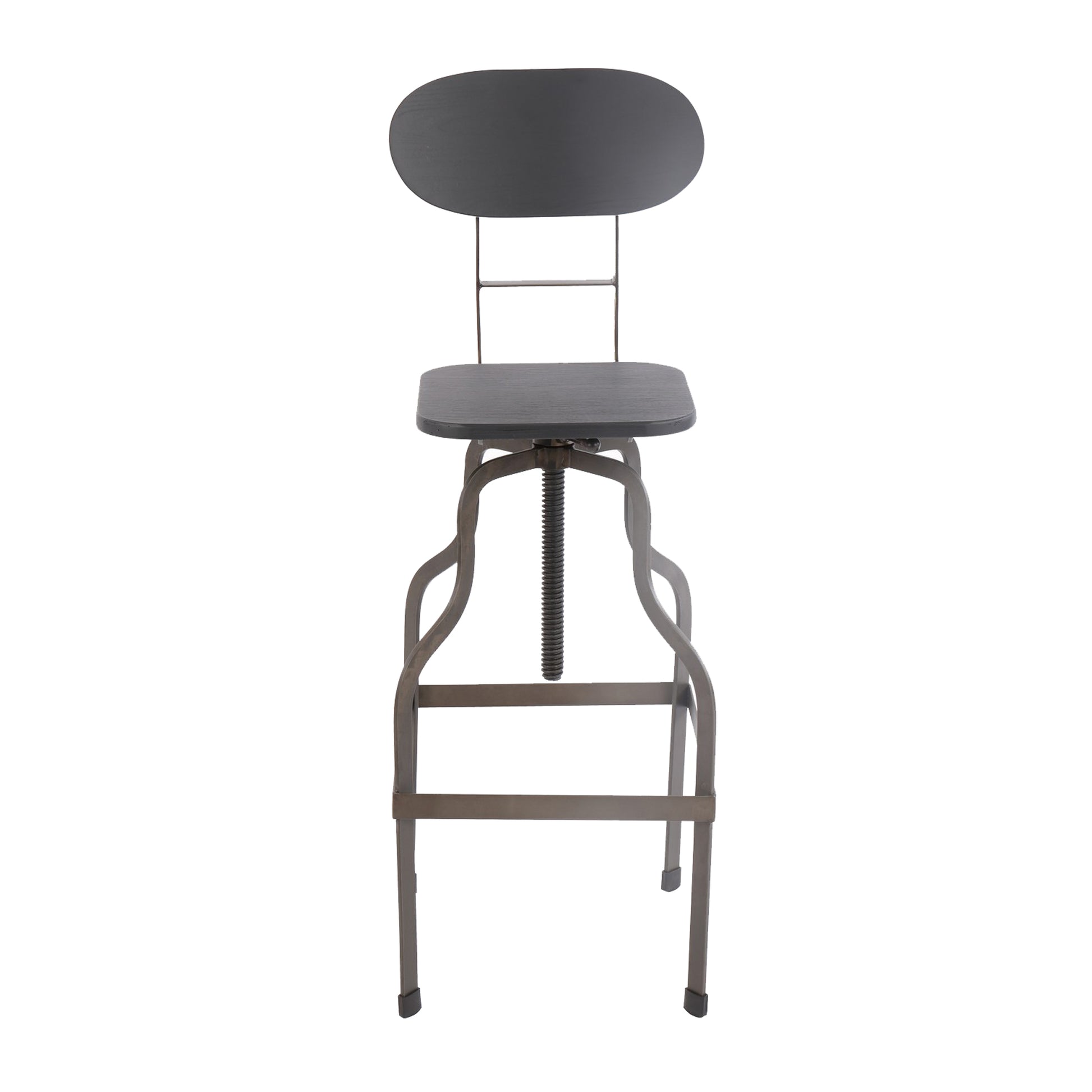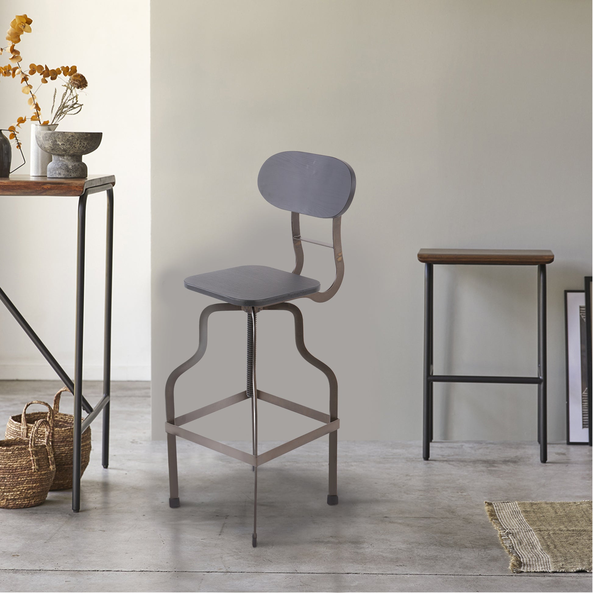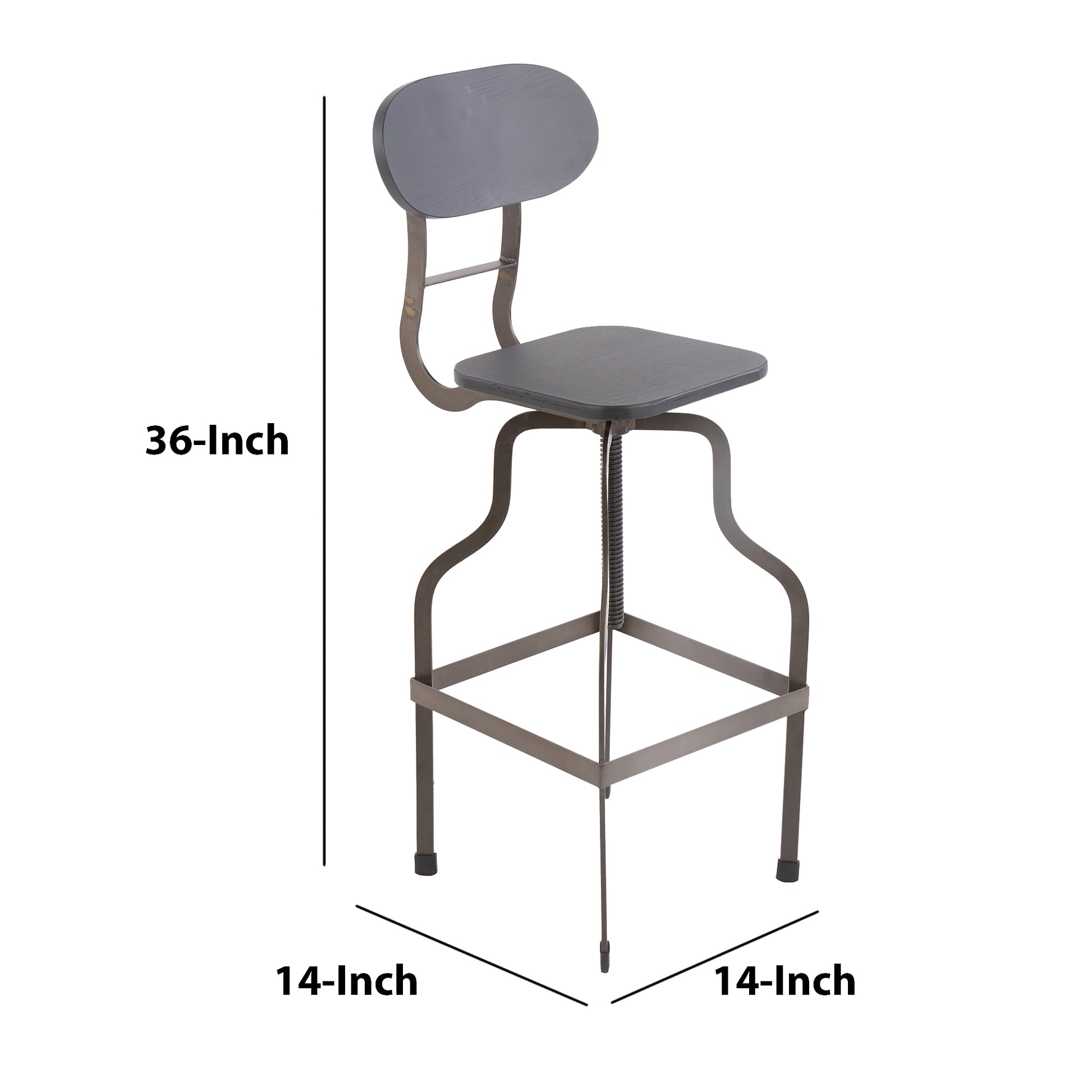 Industrial Style Wooden Swivel Bar Stool With Curved Metal Base, Gray Gray Iron