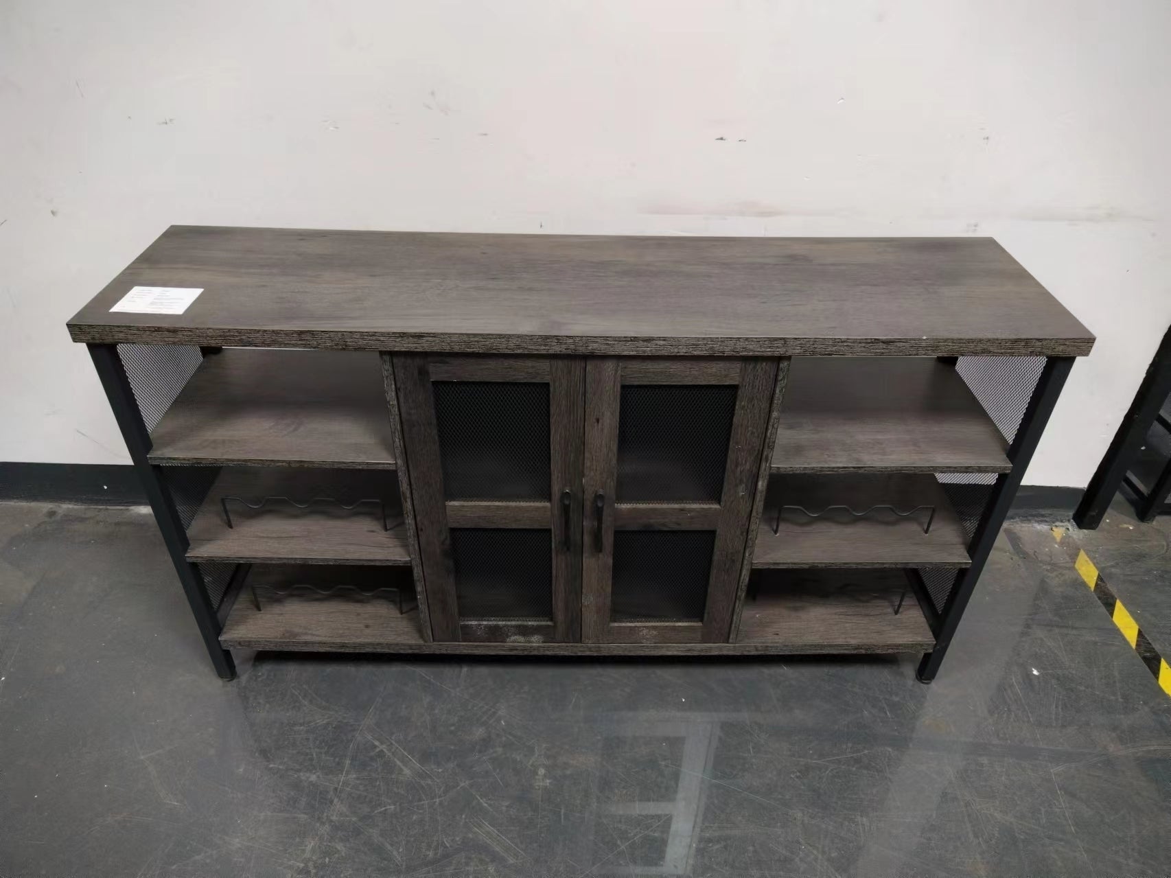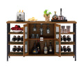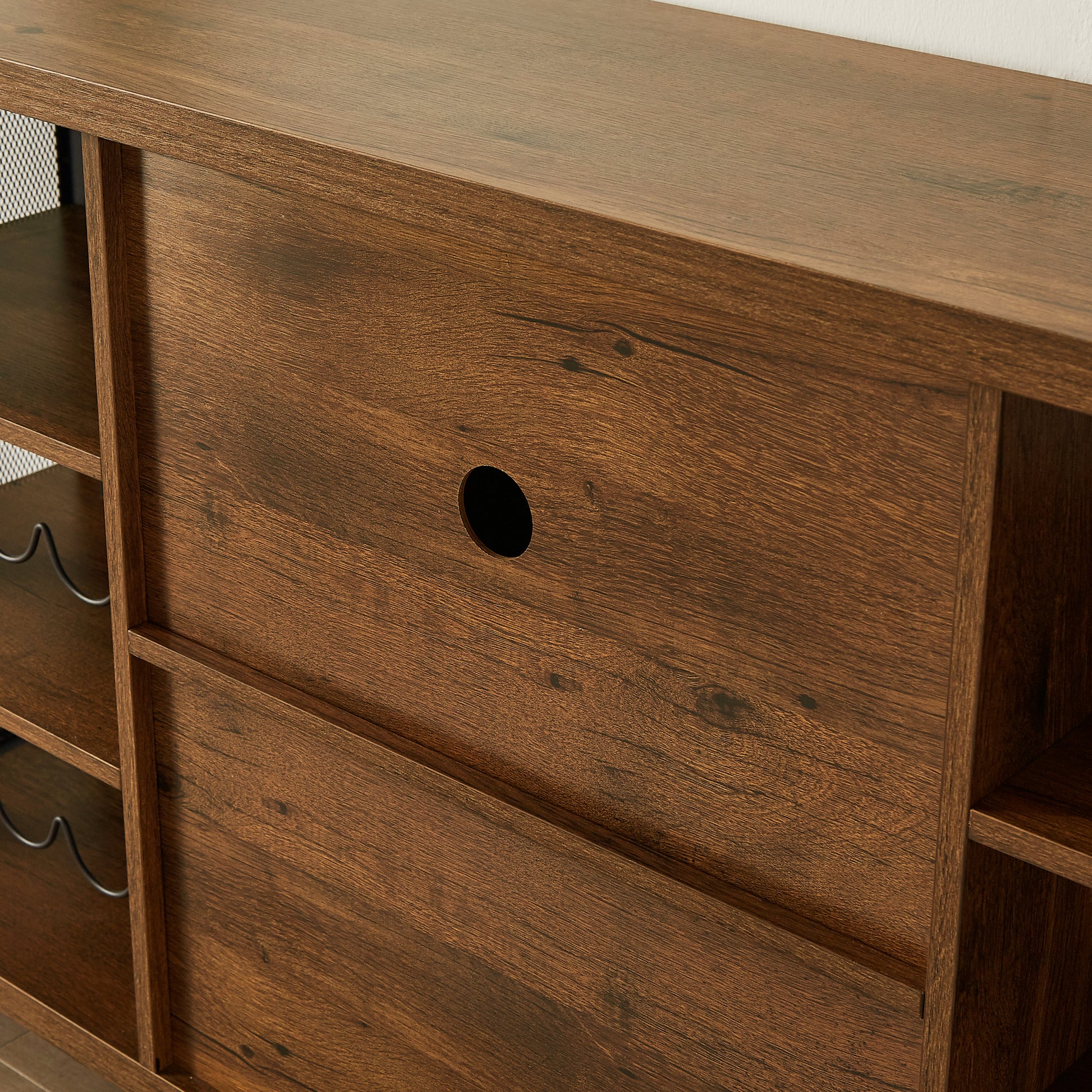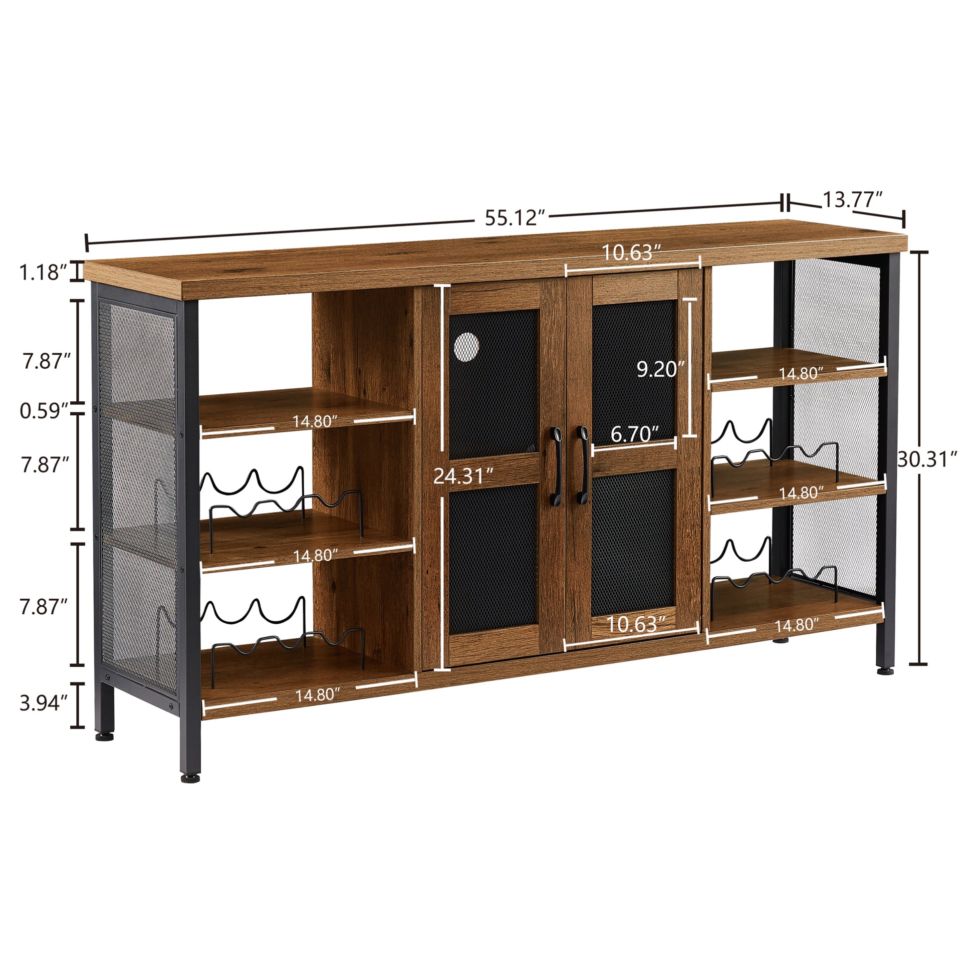 Industrial Wine Bar Cabinet, Liquor Storage Credenza, Sideboard With Wine Racks & Stemware Holder Hazelnut Brown, 55.12''W X 13.78''D X 30.31'' H Brown Oak Particle Board