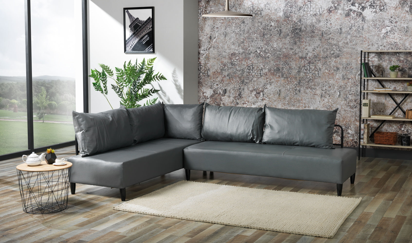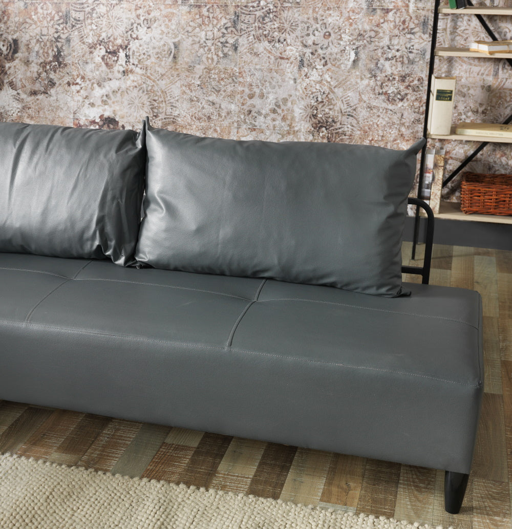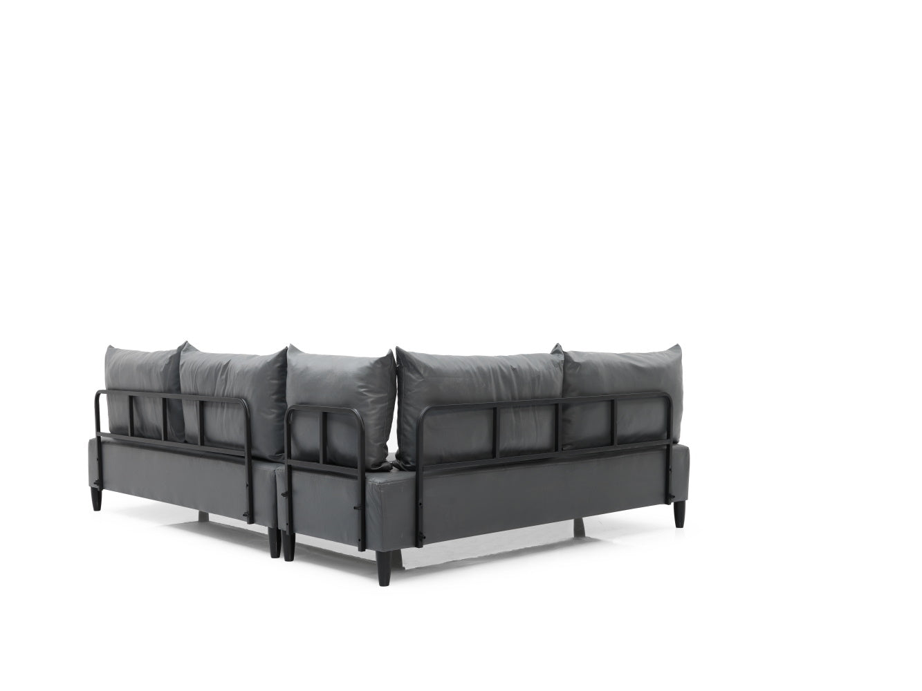 Inferno Metal Frame Vynil Upholstered Sectional For Living Room Grey Metal
