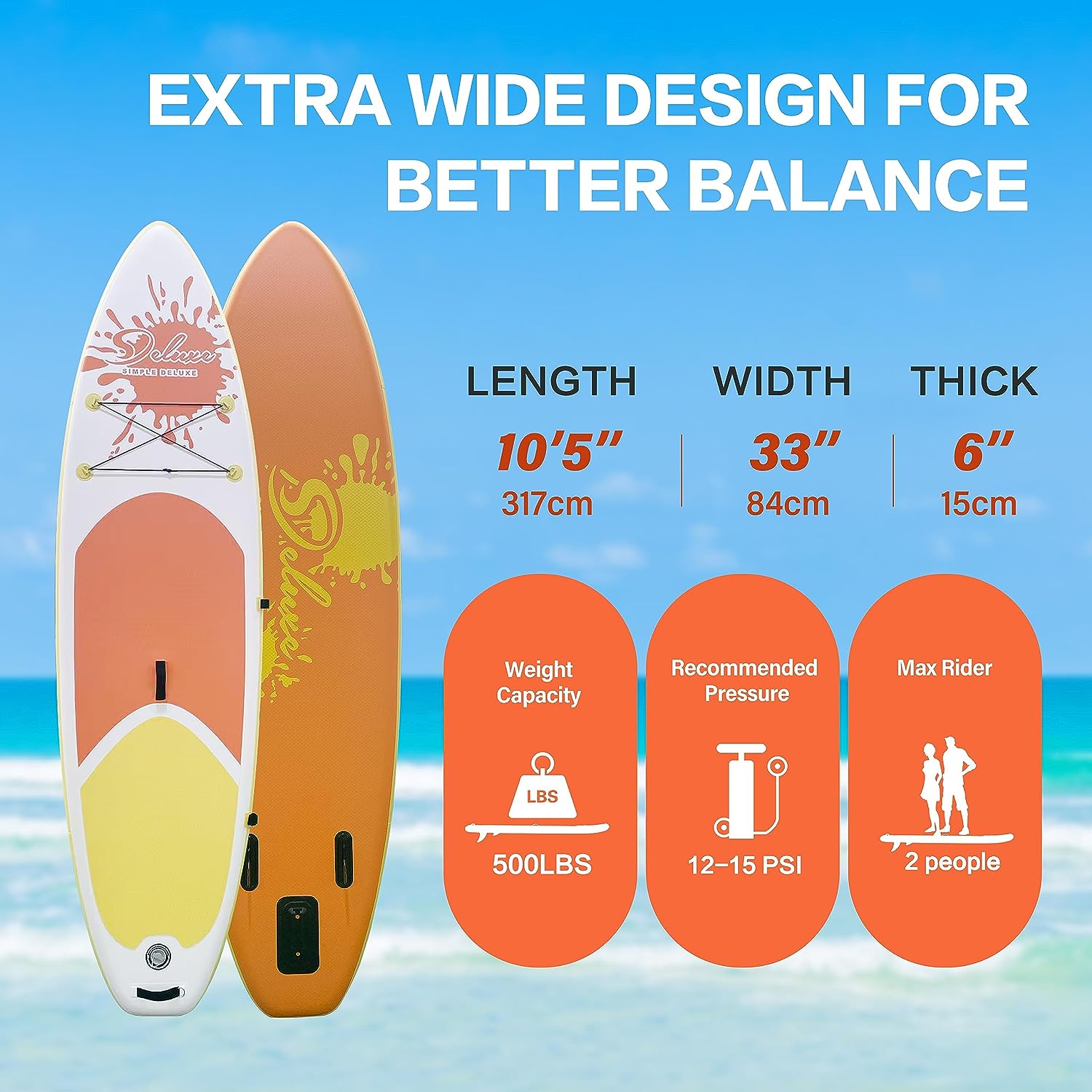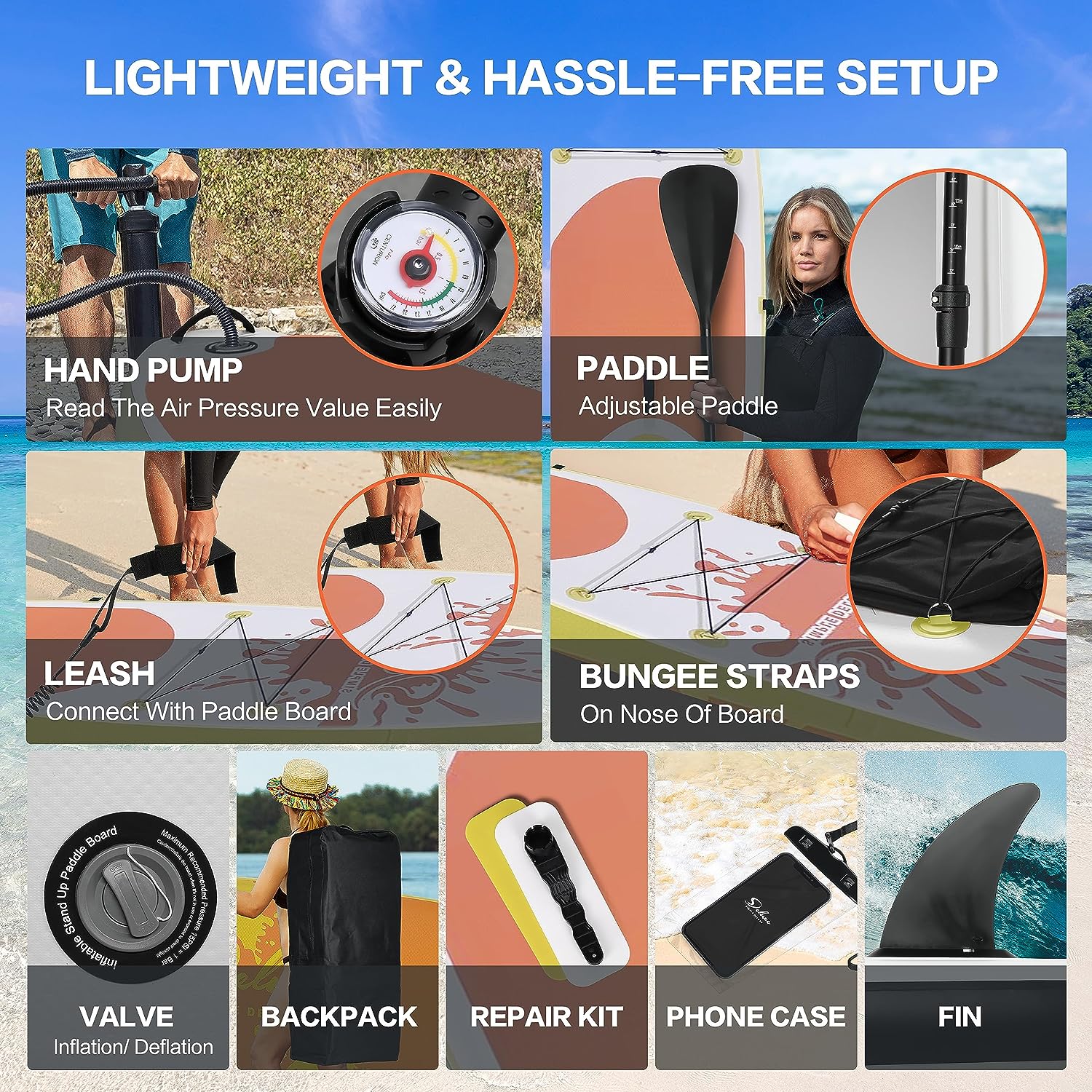 Inflatable Stand Up Paddle Board Simple Deluxe Premium Sup For All S Levels, Pink Paddle Boards For Adults & Youth, Blow Up Stand Up Paddleboards With Accessories & Backpack, Surf Control Orange Aluminium