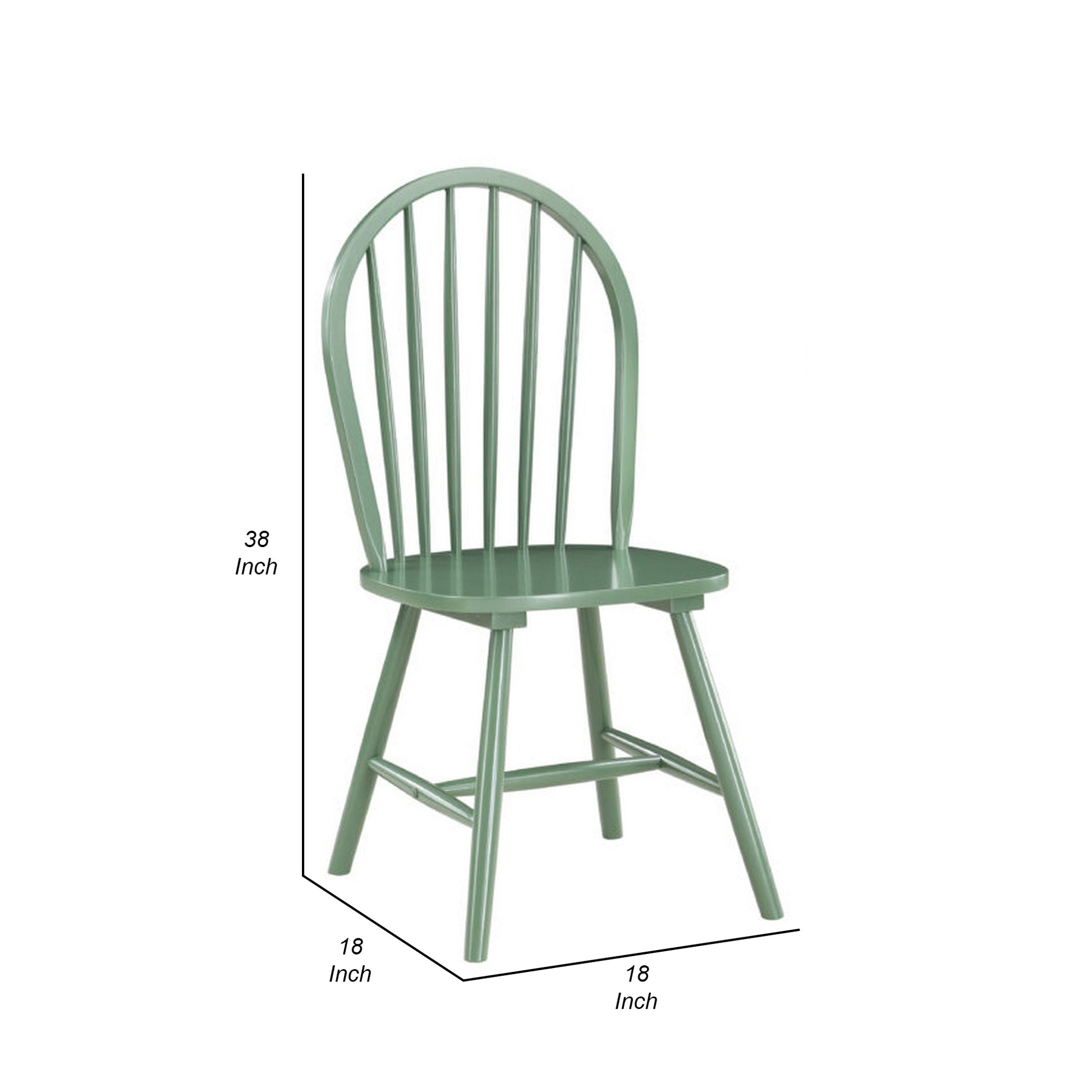 Irvin 18 Inch Modern Dining Chairs, Round Spindle Backs, Set Of 2, Green Green Solid Wood